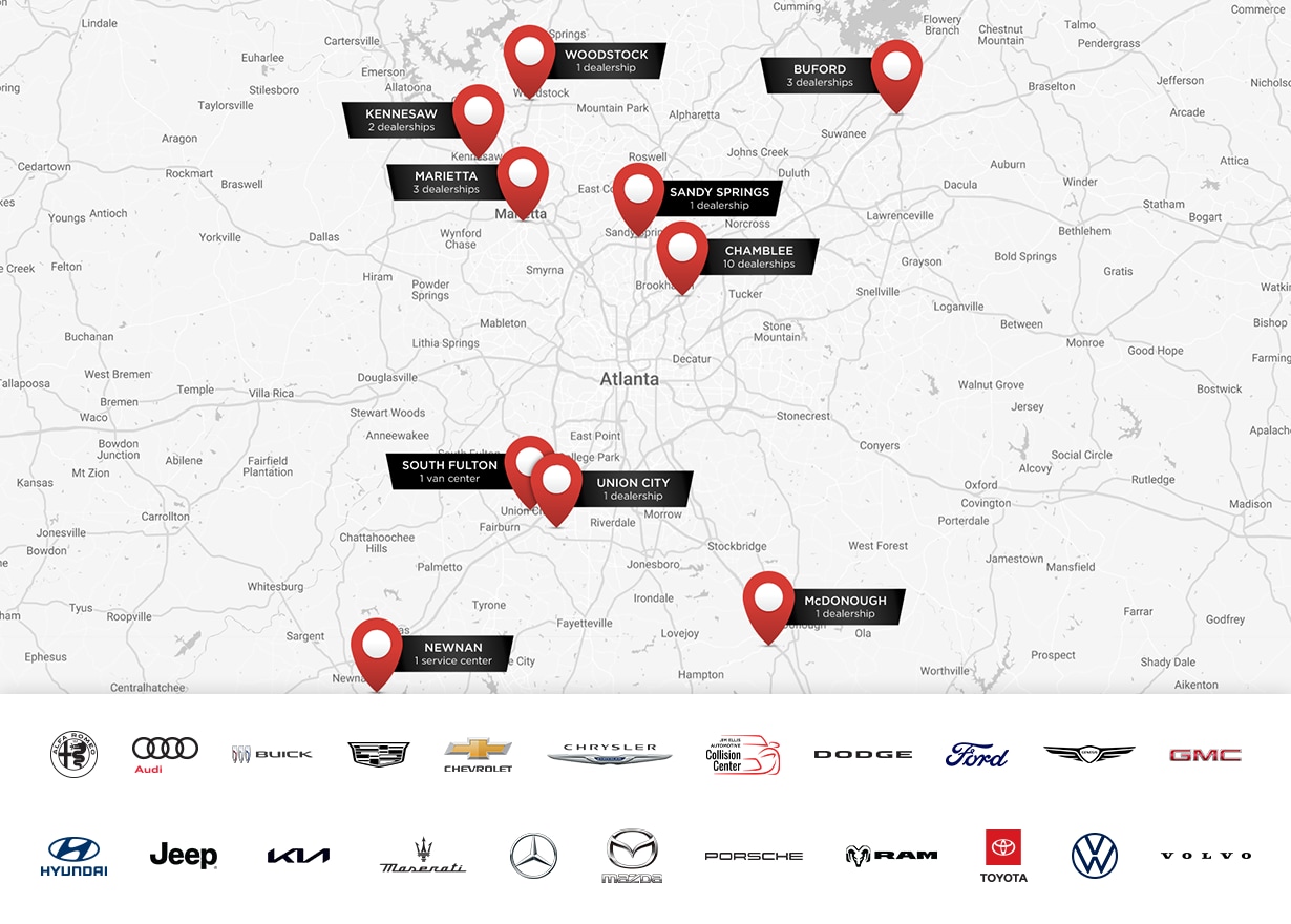 In 2021, the Jim Ellis Automotive Group passed the milestone of 50 years in business, years that brought success in both growth and reputation. During that time, the company expanded from one flagship Volkswagen dealership in Chamblee to 22 dealerships, a collision center, a service center and a commercial van center, covering Atlanta, Buford, Kennesaw, McDonough, Marietta, Newnan, Sandy Springs, South Fulton, Union City and Woodstock.