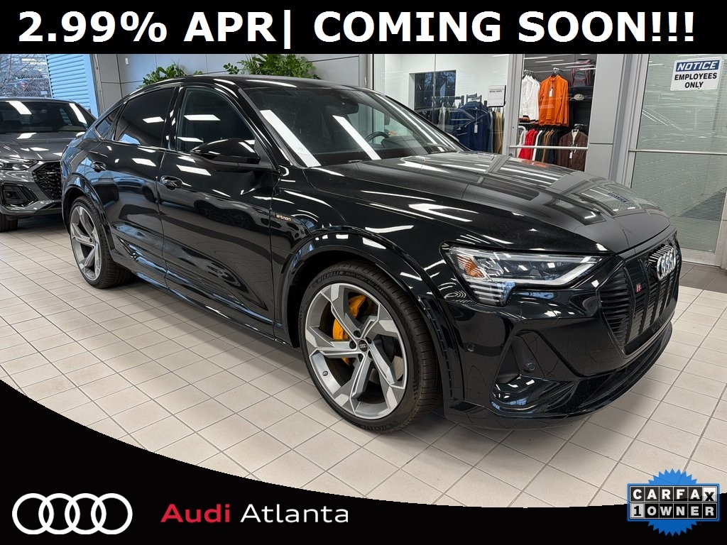The 2023 Audi e-tron S Sportback in Mythos Black Metallic combines striking style with advanced all-electric performance. Its black Valcona/Milano leather interior features ventilated and massaging front seats, while the three-motor quattro system delivers dynamic all-wheel-drive capability. Loaded with Audi’s latest tech, this electric SUV offers luxury, comfort, and cutting-edge safety in a sleek Sportback silhouette.
