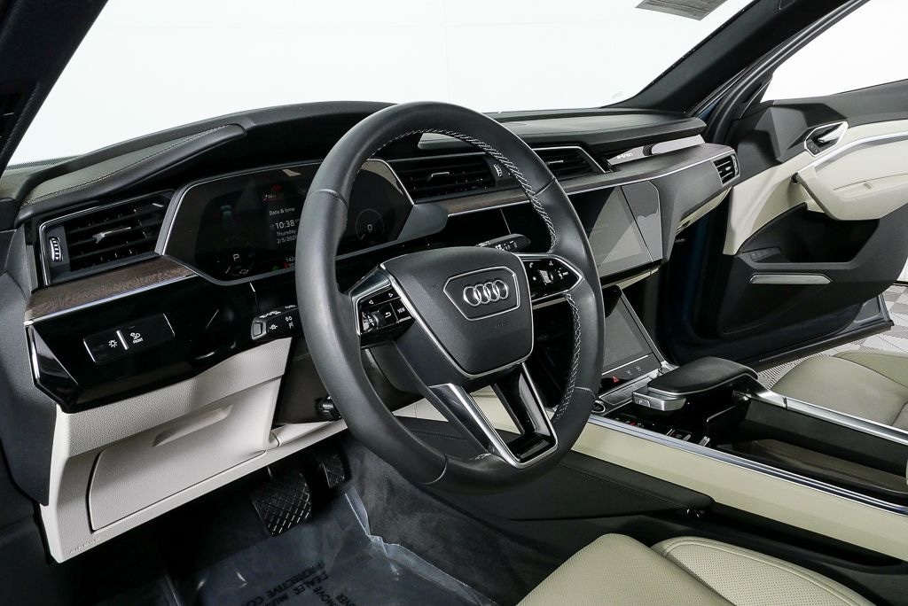 The 2024 Audi Q8 Sportback S line e-tron quattro in Plasma Blue Metallic delivers a striking coupe-inspired electric design paired with refined luxury, advanced driver technology, and confident quattro all-wheel drive, complemented by a Pearl Beige interior and an extensive Prestige package.