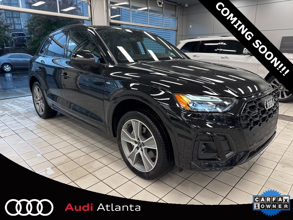 The 2025 Audi Q5 S line 45 TFSI quattro in Mythos Black Metallic with Black leather and Rock Gray stitching blends luxury, power, and precision. Driven by a 2.0-liter turbocharged engine with quattro all-wheel drive and a 7-speed S tronic transmission, it delivers confident performance and control. Inside, the cabin pairs refined craftsmanship with advanced technology, highlighted by the Audi Virtual Cockpit, panoramic sunroof, and three-zone climate control. The Convenience Plus package adds premium touches like 20-inch wheels, memory seating, and black optic accents for a sleek, modern edge.