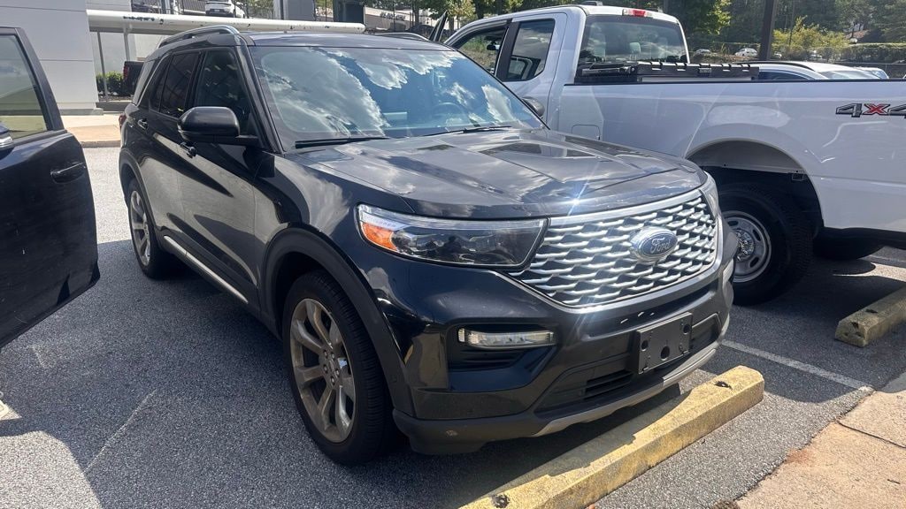 Certified. Recent Arrival! CARFAX One-Owner. 2020 Ford Explorer Platinum Agate Black Metallic 10-Speed Automatic 3.0L EcoBoost V6