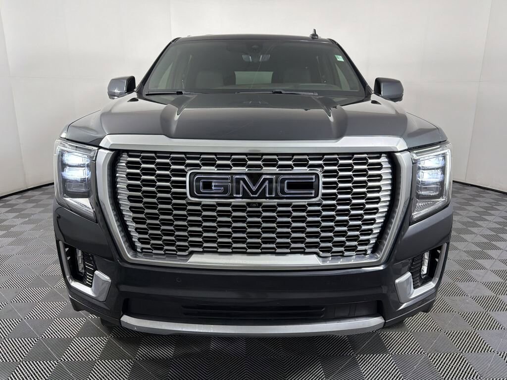 CARFAX One-Owner. Clean CARFAX. Hunter Metallic 2022 GMC Yukon Denali 4WD 10-Speed Automatic with Overdrive EcoTec3 6.2L V8 4WD, 15 Diagonal Multi-Color Head-Up Display, 2 Presets For Outside Rearview Mirrors, 3 Years of GMC Connected Services, 3rd Row 60/40 Power-Folding Split-Bench Seat, Adaptive Cruise Control, Advanced Security Package, Advanced Technology Package, Air Ride Adaptive Suspension, Automatic Stop/Start, Bright Front & Rear Door Sill Plates, Chrome Door Handles w/Body-Color Strip, Denali Premium Package, Dual Exhaust System, Dual-Pane Panoramic Power Sunroof, Electronic Limited Slip Differential (eLSD), Enhanced Automatic Emergency Braking, Floor Console, Galvano Bodyside Moldings, Glass Breakage Sensor, Hands-Free Power Programmable Rear Liftgate, HD Surround Vision, Heated & Ventilated Driver & Front Passenger Seats, Heated 2nd Row Outboard Position Seats, Heated Driver & Front Passenger Seats, Heated Steering Wheel, Hill Descent Control, Inside Rear-View Auto-Dimming Mirror, Inside Rearview Auto-Dimming Rear Camera Mirror, Navigation System, Outside Heated Power-Adjustable Mirrors, Power Release 2nd Row Bucket Seats, Power Tilt & Telescopic Steering Column, Power-Retractable Assist Steps, Preferred Equipment Group 5SA, Premium Capability Package w/Active Response 4WD, Rear Camera Mirror Washer, Rear Pedestrian Alert, Reverse Automatic Braking, Safety Alert Seat, Start/Stop System Disable Button, Theft-Deterrent Alarm System, Universal Home Remote, Vehicle Inclination Sensor, Vehicle Interior Movement Sensor, Wireless Charging.