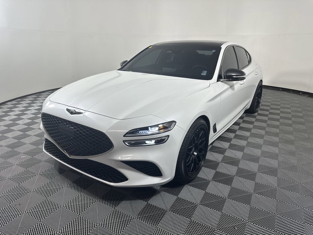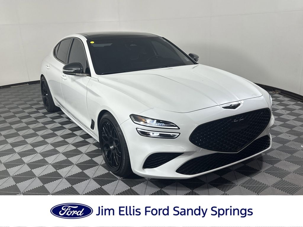 Certified. CARFAX One-Owner. Clean CARFAX. 2023 Genesis G70 3.3T Uyuni White 8-Speed Automatic with SHIFTRONIC 3.3L V6 DGI DOHC 24V