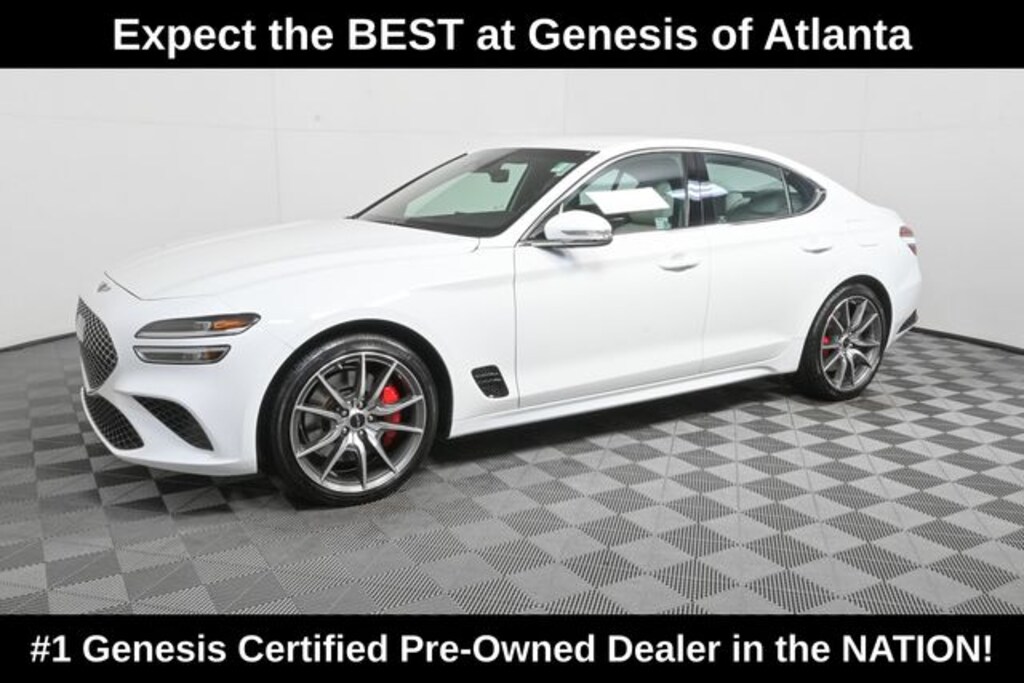 Certified. Clean CARFAX. 2025 Genesis G70 2.5T Alta White *#1 GENESIS CERTIFIED PRE-OWNED DEALER IN THE COUNTRY*, *YOU CAN ALWAYS EXPECT THE BEST AT GENESIS OF ATLANTA*, *GENESIS CERTIFIED*, *LET US EXCEED YOUR EXPECTATIONS*, Only Genesis Dealership Inside The Perimeter!!!, Serviced exclusively at Genesis of Atlanta, This vehicle has never been titled, meaning you'll be the first owner and will have a better trade-in value down the road, Heated Front Seats, Highway Driving Assist, Apple CarPlay & Android Auto, G70 2.5T, I4, RWD, Alta White, Fog Gray Two-Tone w/Leatherette Seating Surfaces or Leather Seating Surfaces. Genesis Certified Details: