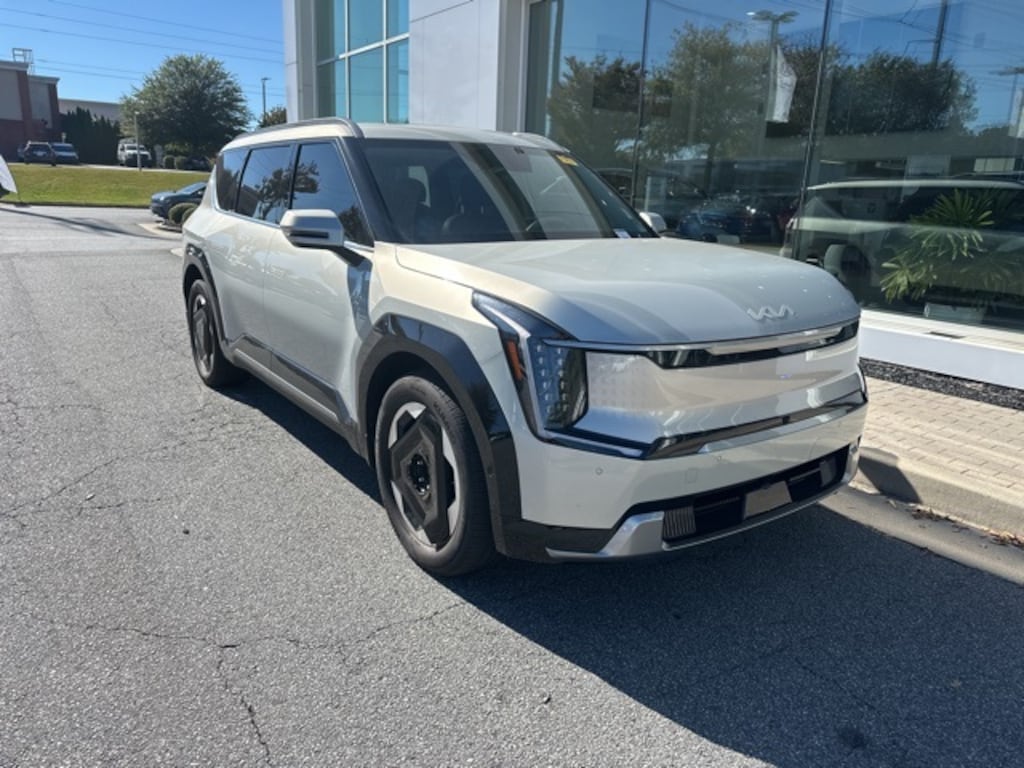 2024 Kia EV9 Land Certified. Ivory Silver 1-Speed Automatic AWD Odometer is 2024 miles below market average!