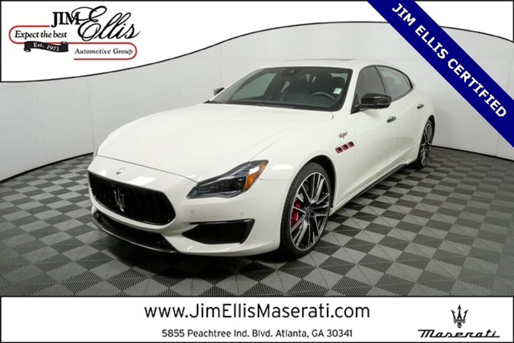 New Arrival! Rare opportunity to own this One-Owner, 2022 Maserati Quattroporte Trofeo RWD in Bianco White exterior paint over Black w/Red Stitching Pieno Fiore Full Leather interior. This Quattroporte is equipped with an 8-Speed automatic transmission and a 3.8L V8 Twin-Turbocharged engine pumping out over 580 horsepower! With Maserati's decision to discontinue the V8 engine in 2024, this Quattroporte won't last. This vehicle is still backed by the remainder of the Maserati factory warranty. Please see the options and features below and call us today at 770-454-3333 to schedule your test drive appointment.