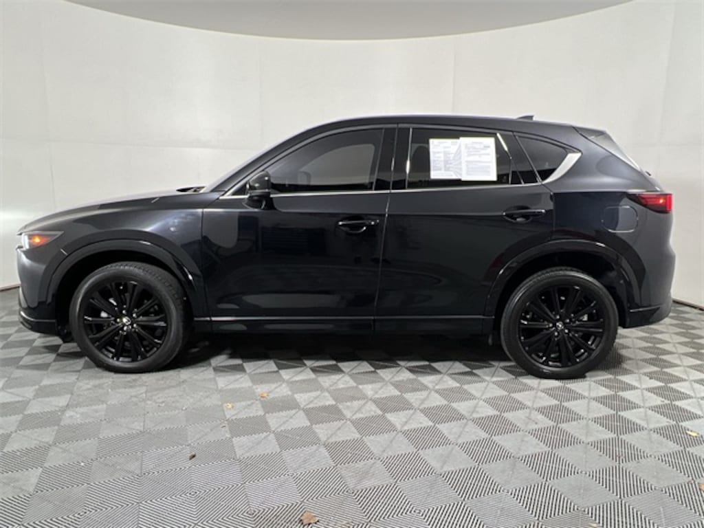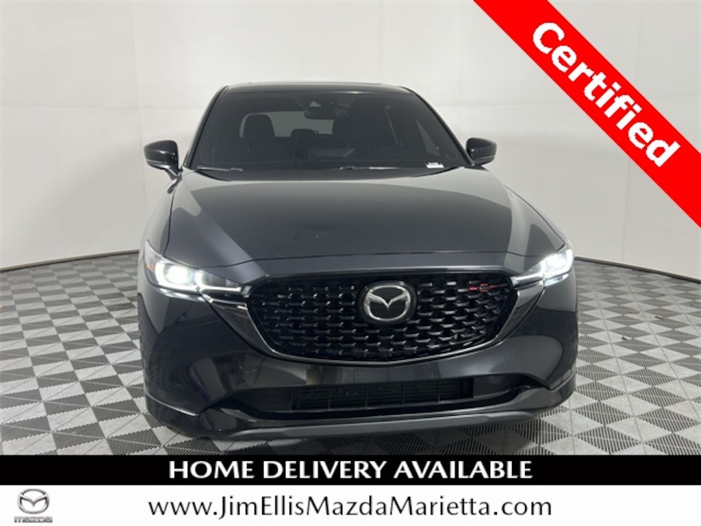 Jim Ellis Mazda Marietta is honored to offer this gorgeous-looking 2023 Mazda CX-5 2.5 Turbo in Jet Black Mica, Beautifully equipped with Mazda Certified Pre-Owned Certified, 10 Speakers, 4-Wheel Disc Brakes, 4.411 Axle Ratio, ABS brakes, Air Conditioning, All-Weather Floor Mats, Alloy wheels, AM/FM radio: SiriusXM, AppLink/Apple CarPlay and Android Auto, Auto High-beam Headlights, Auto-dimming Rear-View mirror, Automatic temperature control, Black Lug Nuts & Black Wheel Locks, Brake assist, Bumpers: body-color, Cargo Storage Shelf, Delay-off headlights, Driver door bin, Driver vanity mirror, Dual front impact airbags, Dual front side impact airbags, E911 Automatic Emergency Notification, Electronic Stability Control, Emergency communication system: MAZDA CONNECT, Exterior Parking Camera Rear, Four wheel independent suspension, Front anti-roll bar, Front Bucket Seats, Front Center Armrest w/Storage, Front dual zone A/C, Front reading lights, Fully automatic headlights, Garage door transmitter: HomeLink, Heads-Up Display, Heated door mirrors, Heated front seats, Heated rear seats, Heated steering wheel, Heated/Ventilated Front Bucket Seats, Illuminated entry, Infotainment System Voice Command, Leather Seat Trim, Leather Shift Knob, Low tire pressure warning, Memory seat, Multifunction Commander Control, Occupant sensing airbag, Outside temperature display, Overhead airbag, Overhead console, Pandora, Panic alarm, Passenger door bin, Passenger vanity mirror, Power door mirrors, Power driver seat, Power Liftgate, Power moonroof, Power passenger seat, Power steering, Power windows, Radio Broadcast Data System Program Information, Radio data system, Radio: AM/FM/HD Audio System, Rain sensing wipers, Rear anti-roll bar, Rear Bumper Guard, Rear reading lights, Rear seat center armrest, Rear window defroster, Rear window wiper, Remote keyless entry, SMS Text Msg Audio Delivery & Reply, Speed control, Speed-sensing steering, Split folding rear seat, Spoiler, Steering wheel mounted audio controls, Tachometer, Telescoping steering wheel, Tilt steering wheel, Traction control, Trip computer, Turn signal indicator mirrors, Variably intermittent wipers, Ventilated front seats, and Wheels: 19" x 7J Aluminum Alloy. 22/27 City/Highway MPG