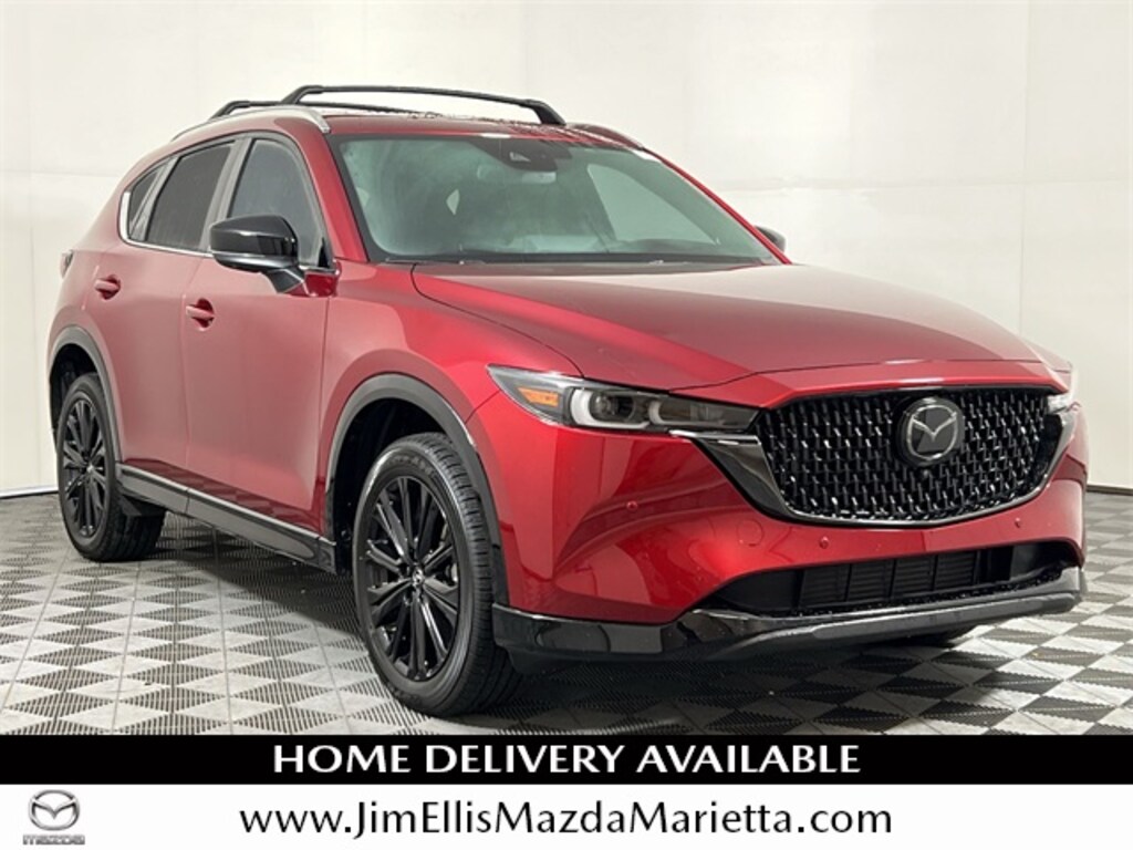 Jim Ellis Mazda Marietta is pleased to offer this good-looking 2025 Mazda CX-5 2.5 Turbo Premium in Soul Red Crystal Metallic, Beautifully equipped with Roof Rails & Cross Bars Package, Mazda Certified Pre-Owned Certified, 10 Speakers, 4-Wheel Disc Brakes, ABS brakes, Air Conditioning, Alloy wheels, AM/FM radio: SiriusXM, AppLink/Apple CarPlay and Android Auto, Auto High-beam Headlights, Auto-dimming Rear-View mirror, Automatic temperature control, Black Lug Nuts & Black Wheel Locks, Brake assist, Bumpers: body-color, Delay-off headlights, Driver door bin, Driver vanity mirror, Dual front impact airbags, Dual front side impact airbags, E911 Automatic Emergency Notification, Electronic Stability Control, Emergency communication system: MAZDA CONNECT, Four wheel independent suspension, Front anti-roll bar, Front Bucket Seats, Front Center Armrest w/Storage, Front dual zone A/C, Front reading lights, Fully automatic headlights, Garage door transmitter: HomeLink, Heads-Up Display, Heated door mirrors, Heated front seats, Heated rear seats, Heated steering wheel, Heated/Ventilated Front Bucket Seats, Illuminated Doorsill Trim Plates, Illuminated entry, Infotainment System Voice Command, Leather Seat Trim, Leather Shift Knob, Leather steering wheel, Low tire pressure warning, Memory seat, Multifunction Commander Control, Occupant sensing airbag, Outside temperature display, Overhead airbag, Overhead console, Pandora, Panic alarm, Passenger door bin, Passenger vanity mirror, Power door mirrors, Power driver seat, Power Liftgate, Power moonroof, Power passenger seat, Power steering, Power windows, Radio Broadcast Data System Program Information, Radio data system, Radio: AM/FM/HD Audio System, Rain sensing wipers, Rear anti-roll bar, Rear Bumper Guard, Rear reading lights, Rear seat center armrest, Rear window defroster, Rear window wiper, Remote keyless entry, SMS Text Msg Audio Delivery & Reply, Soul Red Crystal Metallic Paint, Speed control, Speed-sensing steering, Split folding rear seat, Spoiler, Steering wheel mounted audio controls, Tachometer, Telescoping steering wheel, Tilt steering wheel, Traction control, Trip computer, Turn signal indicator mirrors, Variably intermittent wipers, Ventilated front seats, and Wheels: 19" x 7J Aluminum Alloy. Recent Arrival! Odometer is 1235 miles below market average! 22/27 City/Highway MPG