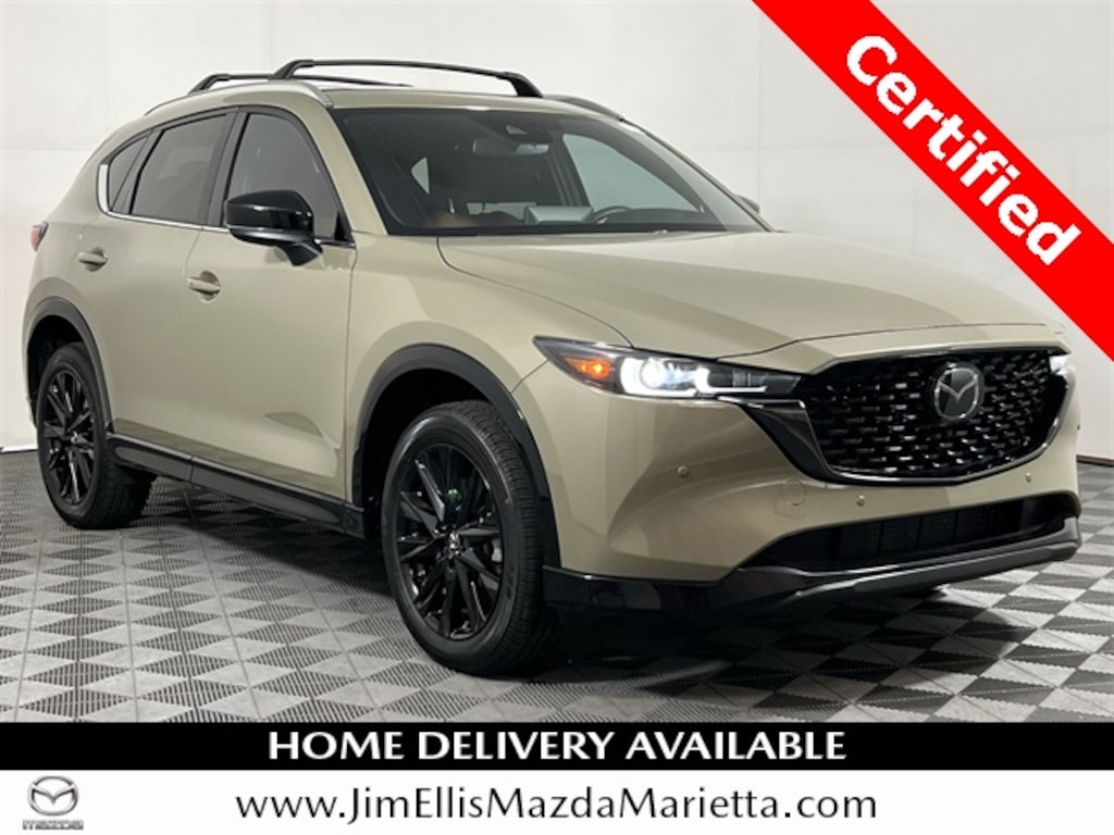 Jim Ellis Mazda Marietta is delighted to offer this attractive 2025 Mazda CX-5 2.5 Carbon Turbo in Zircon Sand Metallic, Beautifully equipped with Roof Rails & Cross Bars Package, Mazda Certified Pre-Owned Certified, 10 Speakers, 4-Wheel Disc Brakes, ABS brakes, Air Conditioning, All-Weather Floor Mats, Alloy wheels, AM/FM radio: SiriusXM, AppLink/Apple CarPlay and Android Auto, Auto High-beam Headlights, Auto-dimming Rear-View mirror, Automatic temperature control, Black Lug Nuts & Black Wheel Locks, Brake assist, Bumpers: body-color, Carbon Edition License Plate Frame, Delay-off headlights, Driver door bin, Driver vanity mirror, Dual front impact airbags, Dual front side impact airbags, E911 Automatic Emergency Notification, Electronic Stability Control, Emergency communication system: MAZDA CONNECT, First Aid Kit, Four wheel independent suspension, Front anti-roll bar, Front Bucket Seats, Front Center Armrest w/Storage, Front dual zone A/C, Front reading lights, Fully automatic headlights, Garage door transmitter: HomeLink, Heads-Up Display, Heated door mirrors, Heated front seats, Heated/Ventilated Front Bucket Seats, Illuminated entry, Infotainment System Voice Command, Leather Seat Trim w/Synthetic Suede Inserts, Leather Shift Knob, Leather steering wheel, Low tire pressure warning, Memory seat, Multifunction Commander Control, Occupant sensing airbag, Outside temperature display, Overhead airbag, Overhead console, Pandora, Panic alarm, Passenger door bin, Passenger vanity mirror, Power door mirrors, Power driver seat, Power Liftgate, Power moonroof, Power passenger seat, Power steering, Power windows, Radio Broadcast Data System Program Information, Radio data system, Radio: AM/FM/HD Audio System, Rain sensing wipers, Rear anti-roll bar, Rear reading lights, Rear seat center armrest, Rear window defroster, Rear window wiper, Remote keyless entry, Retractable Cargo Cover, Roadside Assistance Kit, SMS Text Msg Audio Delivery & Reply, Speed control, Speed-sensing steering, Split folding rear seat, Spoiler, Steering wheel mounted audio controls, Tachometer, Telescoping steering wheel, Tilt steering wheel, Traction control, Trip computer, Turn signal indicator mirrors, Variably intermittent wipers, Ventilated front seats, Wheels: 19" x 7J Aluminum Alloy, and Zircon Sand Metallic (JCS). Odometer is 1998 miles below market average! 22/27 City/Highway MPG