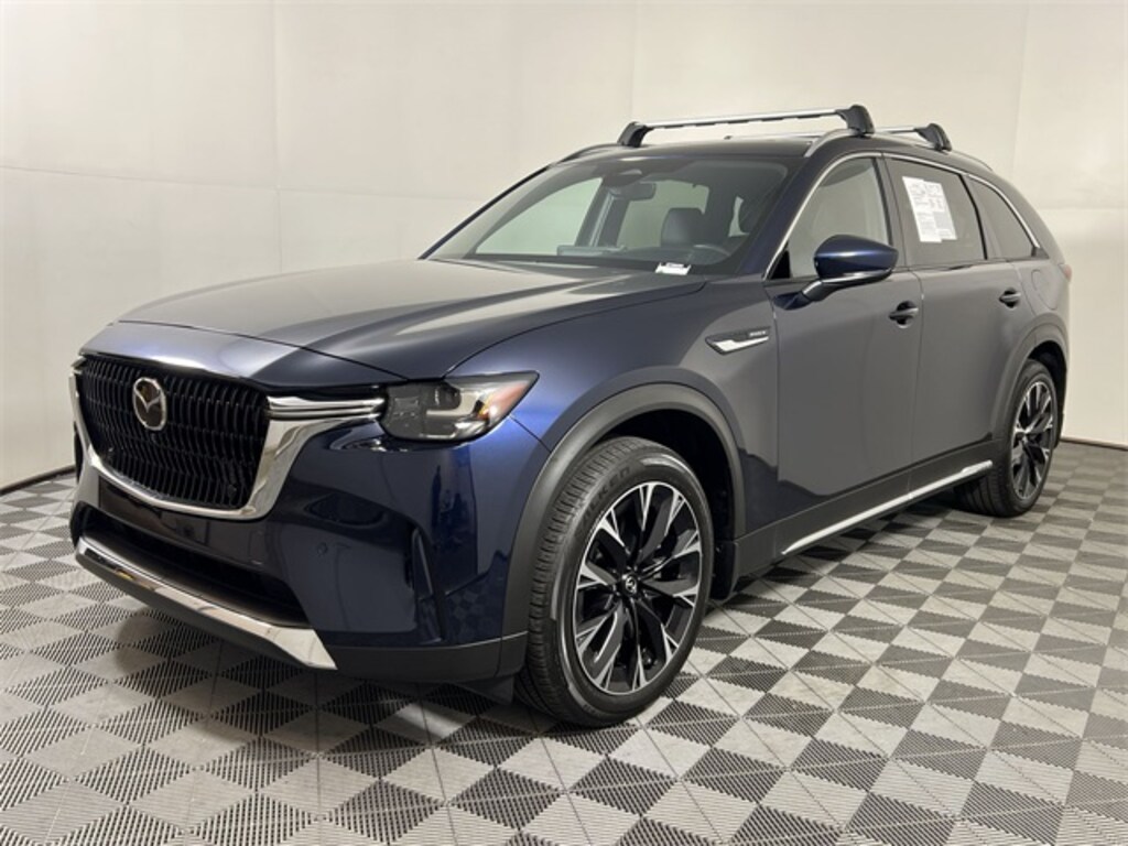 Jim Ellis Mazda Marietta is proud to offer this good-looking 2025 Mazda CX-90 PHEV Premium Plus in Deep Crystal Blue Mica, Beautifully equipped with Mazda Certified Pre-Owned Certified, 2.5L 4-Cylinder, 12 Speakers, 3rd row seats: bench, 4-Wheel Disc Brakes, ABS brakes, Air Conditioning, Alloy wheels, AM/FM radio: SiriusXM, Auto High-beam Headlights, Auto-dimming door mirrors, Auto-dimming Rear-View mirror, Automatic temperature control, Brake assist, Bumpers: body-color, Cargo Net, Carpeted Cargo Mat, Compass, Crossbars in Silver, Delay-off headlights, Driver door bin, Driver vanity mirror, Dual front impact airbags, Dual front side impact airbags, E911 Automatic Emergency Notification, Electronic Stability Control, Emergency communication system: MAZDA CONNECT, Four wheel independent suspension, Front anti-roll bar, Front Bucket Seats, Front Center Armrest w/Storage, Front dual zone A/C, Front reading lights, Fully automatic headlights, Garage door transmitter: HomeLink, Heads-Up Display, Heated door mirrors, Heated front seats, Heated rear seats, Heated steering wheel, Heated/Ventilated Front Bucket Seats, Illuminated entry, Infotainment System Voice Command, Knee airbag, Leather Shift Knob, Leather steering wheel, Low tire pressure warning, Mazda Connected Services, Mazda Navigation System, Memory seat, Nappa Leather Seat Trim, Navigation system: MAZDA CONNECT, Occupant sensing airbag, Outside temperature display, Overhead airbag, Overhead console, Pandora Internet Radio Integration, Panic alarm, Passenger door bin, Passenger vanity mirror, Power door mirrors, Power driver seat, Power Liftgate, Power moonroof, Power passenger seat, Power steering, Power windows, Premium Carpet Floor Mats, Radio Broadcast Data System Program Information, Radio data system, Radio: AM/FM w/HD/Bose 12-Speaker Sound System, Rain sensing wipers, Rear air conditioning, Rear anti-roll bar, Rear reading lights, Rear window defroster, Rear window wiper, Remote keyless entry, Security system, SMS Text Msg Audio Delivery & Reply, Speed control, Speed-sensing steering, Split folding rear seat, Spoiler, Steering wheel mounted audio controls, Tachometer, Telescoping steering wheel, Tilt steering wheel, Traction control, Trip computer, Turn signal indicator mirrors, Variably intermittent wipers, Ventilated front seats, and Wheels: 21" x 9.5J Aluminum Alloy.