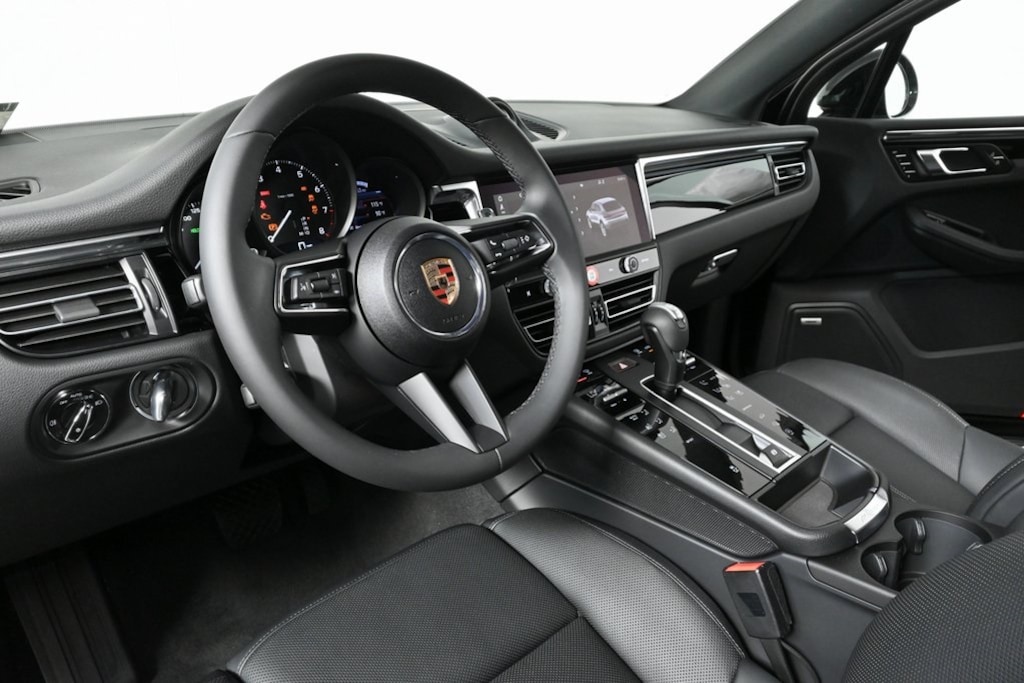 Premium Package Plus adds the Panoramic Roof System, 14-way power seats with memory, rear heated seats, front ventilated seats, LED headlights with Porsche Dynamic Light System Plus, and Lane Change Assist. Additional comfort, technology, and design features include roof rails in high-gloss black, a trailer hitch without tow ball, 19" Macan Design wheels, Porsche Crest on the front headrests, a heated steering wheel, an electric steering column, the BOSE® Surround Sound System, under door puddle light projectors, and Surround View for enhanced parking and maneuvering assistance.