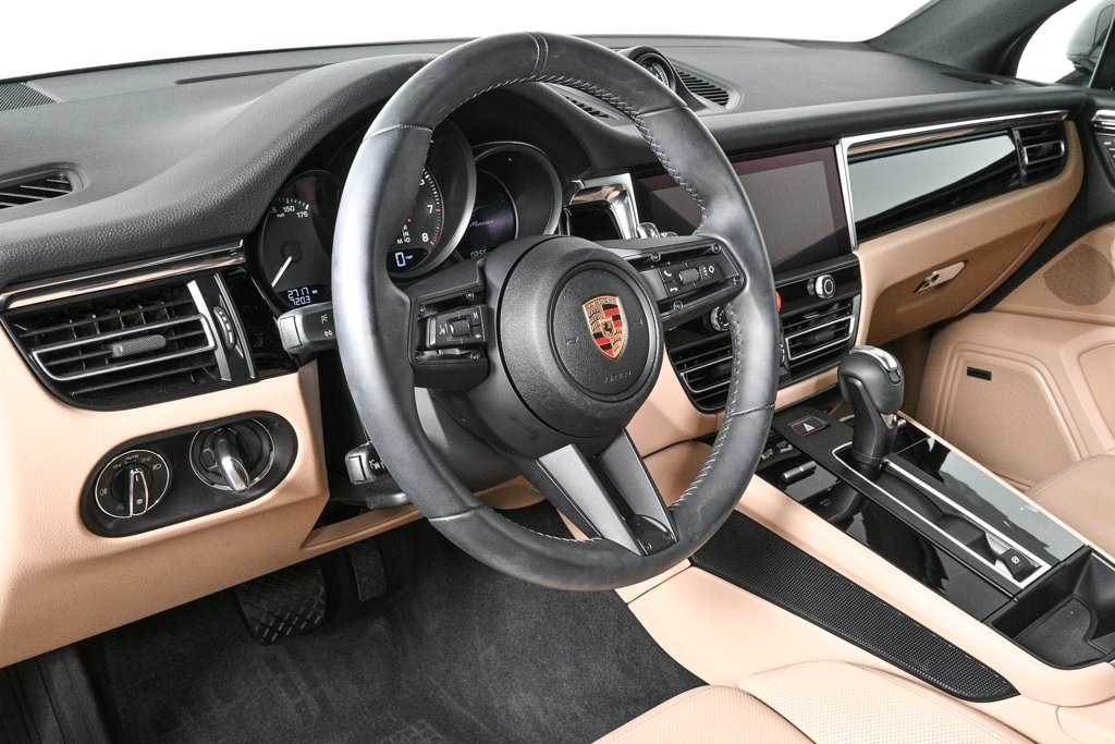 This vehicle includes the Premium Package Plus with a panoramic roof system, 14-way power seats with memory, heated rear and ventilated front seats, LED headlights with Porsche Dynamic Light System Plus (PDLS+), and Lane Change Assist (LCA). Additional features include 20" Macan S wheels in highly polished dark titanium, a heated GT Sport leather steering wheel, BOSE® Surround Sound System, and Surround View.
