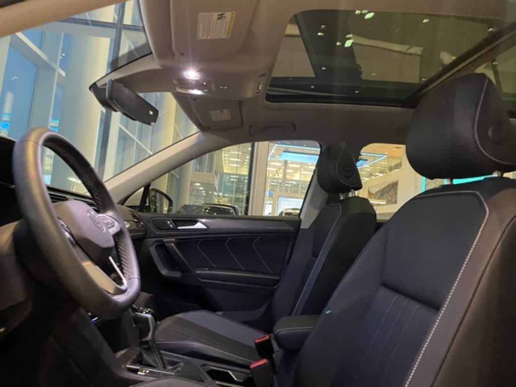 The 2022 Volkswagen Tiguan SE FWD with Panoramic Sunroof offers a refined blend of style, practicality, and modern technology in a versatile compact SUV. Its athletic design is accentuated by sculpted body lines, LED lighting, and 18-inch alloy wheels that give it a confident road presence. The spacious cabin delivers everyday comfort with V-Tex leatherette seating, a power driverâs seat, and a sweeping panoramic sunroof that enhances the airy feel of the interior.
