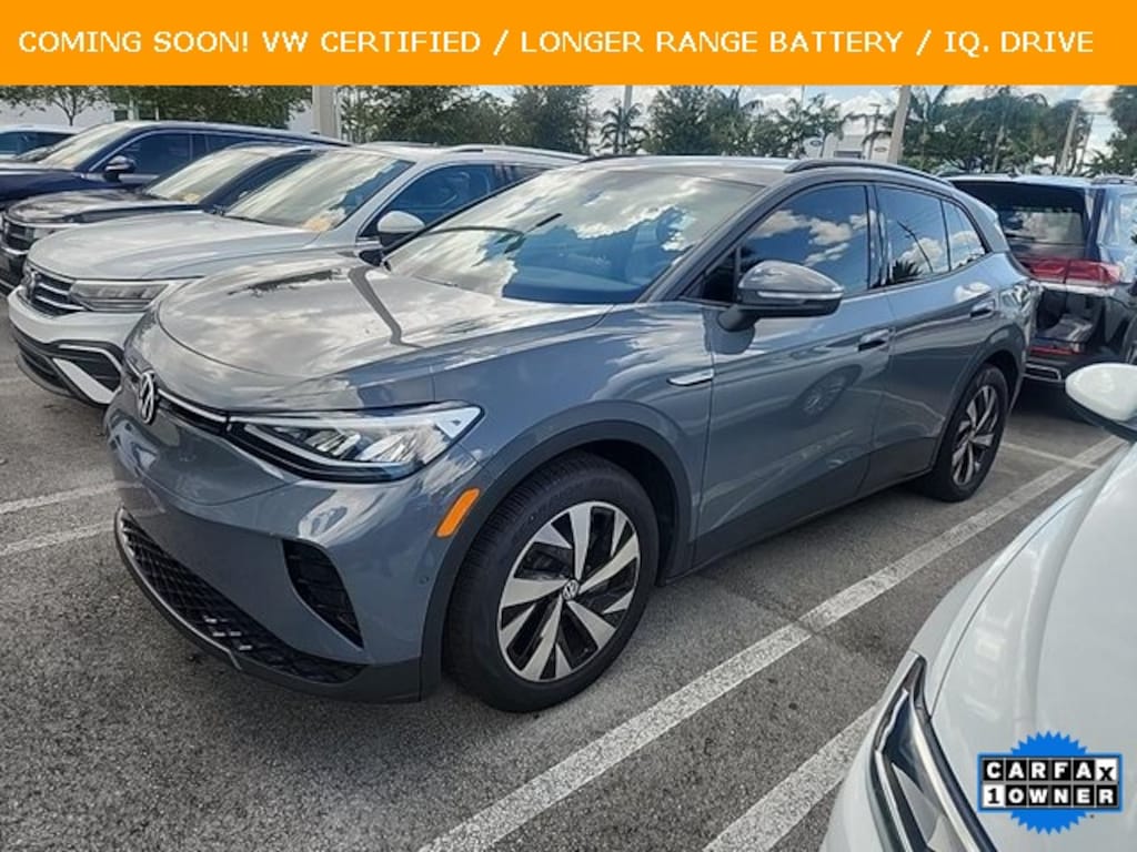 The 2024 Volkswagen ID.4 Pro RWD blends modern electric performance with everyday practicality, offering a refined driving experience and impressive efficiency. As Volkswagenâs fully electric SUV, it delivers smooth acceleration from its rear-mounted electric motor and provides a serene, quiet cabin for both city commutes and highway journeys. The spacious interior features quality materials, intuitive technology, and a clean, minimalist design highlighted by a large infotainment display and digital cockpit. With its substantial range, versatile cargo space, and standard safety features, the ID.4 Pro RWD is a confident step into the all-electric future without compromising comfort or utility.