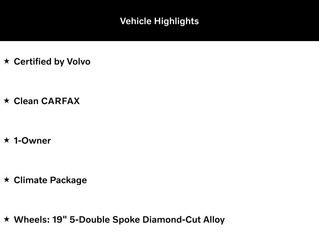 This meticulously maintained V60 Cross Country has been through a comprehensive dealer inspection and detailed to the highest standards, ensuring you can drive with confidence. Under the hood, the 2.0L I4 Turbocharged engine paired with Automatic with Geartronic transmission and AWD delivers a dynamic and efficient performance, with an impressive 24 city / 31 highway MPG.