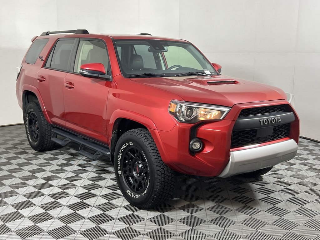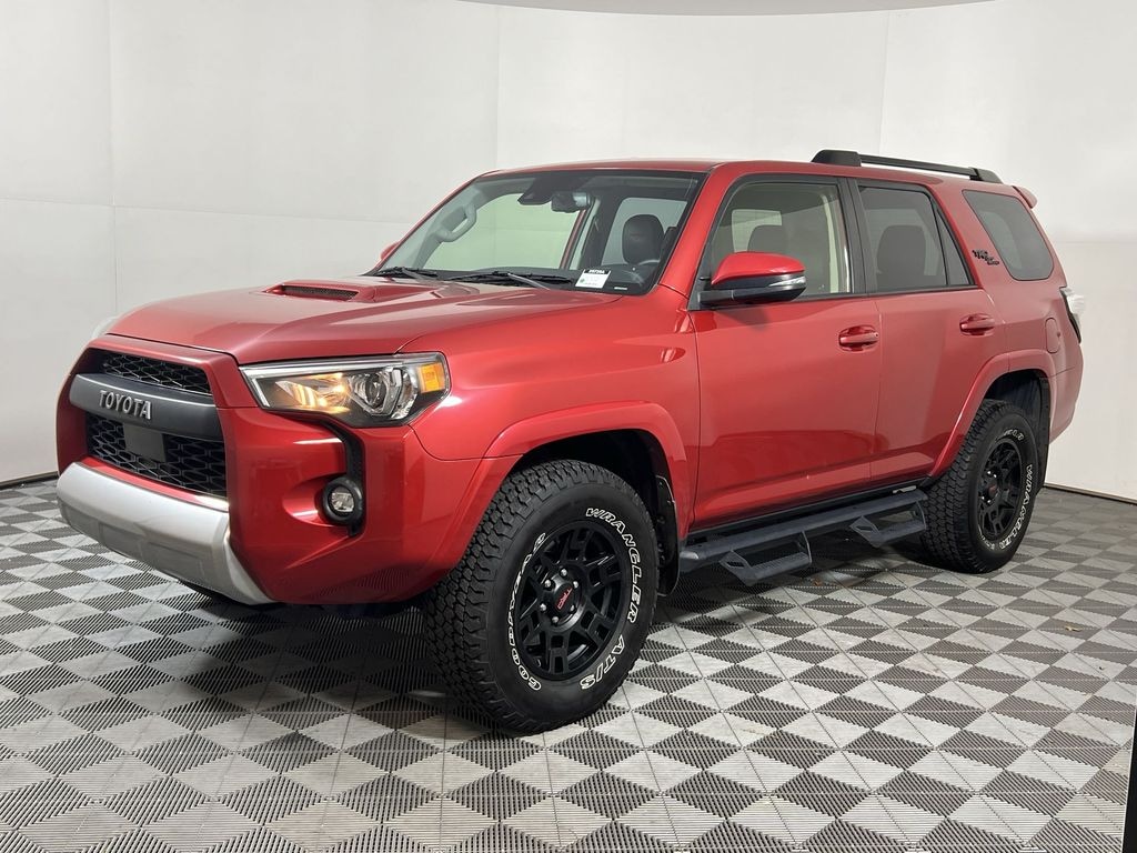 2021 Toyota 4Runner TRD Off-Road Premium in Barcelona Red Metallic with Black Leather Interior.