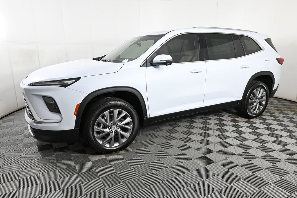 Jim Ellis Buick GMC is proud to offer this handsome-looking 2026 Buick Enclave Preferred in Iridescent White Tricoat Beautifully equipped with Power Package (110-Volt Power Outlet, 2nd Row 1-Touch Flat Folding Seat, 3rd Row 60/40 Power Split-Folding Bench, Head-Up Display, Heated Wiper Park, Inside Rearview Auto-Dimming Rear Camera Mirror, Memory Settings, and Universal Home Remote), Preferred Equipment Group 1SD, FWD, 12 Speakers, 3rd row seats: split-bench, 4-Wheel Disc Brakes, ABS brakes, Air Conditioning, Alloy wheels, AM/FM radio: SiriusXM with 360L, Apple CarPlay/Android Auto, Auto High-beam Headlights, Auto-dimming door mirrors, Auto-dimming Rear-View mirror, Automatic temperature control, Bose Premium 12-Speaker Audio System, Brake assist, Bumpers: body-color, Compass, Delay-off headlights, Driver 4-Way Power Lumbar Seat Adjuster, Driver 8-Way Power Seat Adjuster, Driver door bin, Driver vanity mirror, Dual front impact airbags, Dual front side impact airbags, Electronic Stability Control, Emergency communication system: OnStar and Buick connected services capable, Four wheel independent suspension, Front anti-roll bar, Front Bucket Seats, Front Center Armrest, Front dual zone A/C, Front Passenger 4-Way Power Lumbar Seat Adjuster, Front Passenger 6-Way Power Seat Adjuster, Front reading lights, Fully automatic headlights, Heated door mirrors, Heated Driver & Front Passenger Seats, Heated front seats, Heated steering wheel, Illuminated entry, Leather steering wheel, Leatherette Seat Trim, Low tire pressure warning, Navigation System, Occupant sensing airbag, Outside temperature display, Overhead airbag, Overhead console, Panic alarm, Passenger door bin, Passenger vanity mirror, Power door mirrors, Power driver seat, Power Liftgate, Power passenger seat, Power steering, Power windows, Premium audio system: Buick Infotainment System, Radio data system, Radio: Infotainment Center, Rear air conditioning, Rear anti-roll bar, Rear reading lights, Rear side impact airbag, Rear window defroster, Rear window wiper, Remote keyless entry, Security system, SiriusXM w/360L Trial Subscription, Speed control, Speed-sensing steering, Spoiler, Steering wheel mounted audio controls, Tachometer, Telescoping steering wheel, Tilt steering wheel, Traction control, Trip computer, Turn signal indicator mirrors, Variably intermittent wipers, Voltmeter, Wheels: 20 Alloy w/Medium Android Finish, Wireless Apple CarPlay, and Wireless Google Android Auto !