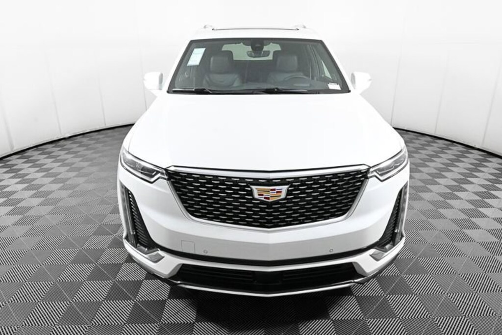 Crystal White Tricoat 2025 Cadillac XT6 Premium Luxury FWD 9-Speed Automatic 3.6L V6 DI VVT Apple Car Play, Sunroof, Bluetooth, Leather, Backup Camera.