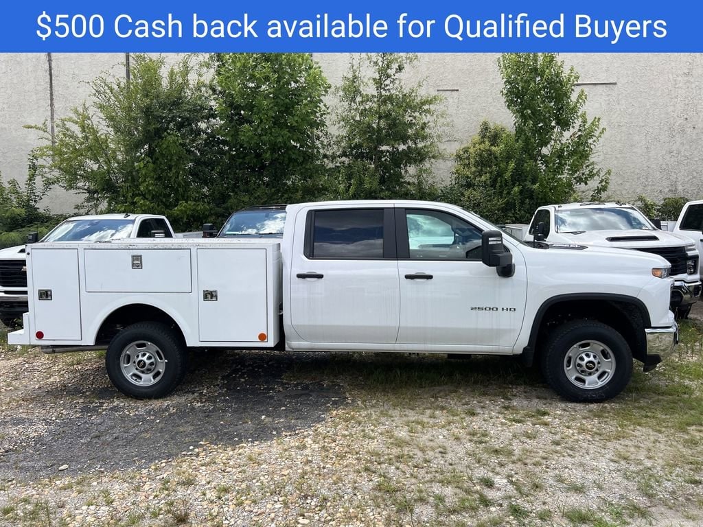 Jim Ellis Chevrolet is excited to offer this hard-working 2024 Chevrolet Silverado 2500HD Work Truck in Summit White Beautifully equipped with Preferred Equipment Group 1WT (170 Amp Alternator, 3.5 Diagonal Monochromatic Display DIC, Black Front Bumper, Black Mirror Caps, Black Rear Bumper, Bluetooth® For Phone, Chevrolet Connected Access Capable, Compass, HD Rear Vision Camera, High-Visibility Vertical Trailering Mirrors, Locking Tailgate, Manual Tailgate Function w/No EZ Lift, Manual Tilt-Wheel Steering Column, OnStar & Chevrolet Connected Services Capable, Power Door Locks, Power Front Windows w/Driver Express Up/Down, Power Rear Windows w/Express Down, Push Button Start, Rear 60/40 Folding Bench Seat (Folds Up), Remote Keyless Entry, Rubberized-Vinyl Floor Covering, Solar Absorbing Tinted Glass, Standard Tailgate, Wi-Fi Hotspot Capable, and Wireless Phone Projection), Suspension Package, WT Convenience Package (Deep-Tinted Glass, Electric Rear-Window Defogger, Electronic Cruise Control w/Set & Resume Speed, EZ Lift Power Lock & Release Tailgate, and Heated Vertical Trailering Mirrors), 10-Speed Automatic, Jet Black Vinyl, 3.73 Rear Axle Ratio, 4-Wheel Disc Brakes, 6 Speakers, 6-Speaker Audio System, 720 Cold-Cranking Amps Heavy-Duty Battery, ABS brakes, Air Conditioning, AM/FM radio, Apple CarPlay/Android Auto, Auto High-beam Headlights, Brake assist, Chrome Front Bumper, Delay-off headlights, Driver door bin, Dual front impact airbags, Dual front side impact airbags, Durabed Pickup Bed, Electronic Stability Control, Front 40/20/40 Split-Bench Seats w/Lockable Storage, Front anti-roll bar, Front Center Armrest w/Storage, Front License Plate Kit, Front reading lights, Front wheel independent suspension, Fully automatic headlights, Illuminated entry, Integrated Trailer Brake Controller, Low tire pressure warning, Occupant sensing airbag, Outside temperature display, Overhead airbag, Overhead console, Panic alarm, Passenger door bin, Passenger vanity mirror, Power steering, Power windows, Premium audio system: Chevrolet Infotainment 3, Radio: Chevrolet Infotainment 3 System, Rear reading lights, Rear step bumper, Remote keyless entry, Split folding rear seat, Tachometer, Tilt steering wheel, Traction control, Trip computer, Variably intermittent wipers, Vinyl Seat Trim, Voltmeter, and Wheels: 17 Silver Painted Steel! 10-Speed Automatic, Jet Black Vinyl.