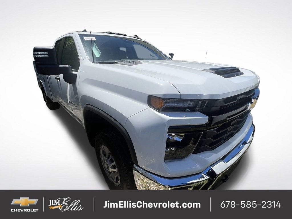 Jim Ellis Chevrolet is delighted to offer this rock solid 2024 Chevrolet Silverado 2500HD Work Truck with READING Utility Body in Summit White Beautifully equipped with Preferred Equipment Group 1WT (170 Amp Alternator, 3.5 Diagonal Monochromatic Display DIC, Black Front Bumper, Black Mirror Caps, Black Rear Bumper, Bluetooth® For Phone, Chevrolet Connected Access Capable, Compass, HD Rear Vision Camera, High-Visibility Vertical Trailering Mirrors, Locking Tailgate, Manual Tailgate Function w/No EZ Lift, Manual Tilt-Wheel Steering Column, OnStar & Chevrolet Connected Services Capable, Power Door Locks, Power Front Windows w/Driver Express Up/Down, Power Rear Windows w/Express Down, Push Button Start, Rear 60/40 Folding Bench Seat (Folds Up), Remote Keyless Entry, Rubberized-Vinyl Floor Covering, Solar Absorbing Tinted Glass, Standard Tailgate, Wi-Fi Hotspot Capable, and Wireless Phone Projection), Suspension Package, WT Convenience Package (Deep-Tinted Glass, Electric Rear-Window Defogger, Electronic Cruise Control w/Set & Resume Speed, EZ Lift Power Lock & Release Tailgate, and Heated Vertical Trailering Mirrors), 10-Speed Automatic, Jet Black Vinyl, 120-Volt Interior Power Outlet, 3.73 Rear Axle Ratio, 4-Wheel Disc Brakes, 6 Speakers, 6-Speaker Audio System, 720 Cold-Cranking Amps Heavy-Duty Battery, ABS brakes, Air Conditioning, AM/FM radio, Apple CarPlay/Android Auto, Auto High-beam Headlights, Auto-Dimming Inside Rear-View Mirror, Brake assist, Chrome Front Bumper, Delay-off headlights, Driver door bin, Dual front impact airbags, Dual front side impact airbags, Durabed Pickup Bed, Electronic Stability Control, Front 40/20/40 Split-Bench Seats w/Lockable Storage, Front anti-roll bar, Front Center Armrest w/Storage, Front License Plate Kit, Front reading lights, Front wheel independent suspension, Fully automatic headlights, Heated & Auto-Dimming Vertical Trailering Mirrors, Illuminated entry, Integrated Trailer Brake Controller, LED Smoked Amber Roof Marker Lamps, Low tire pressure warning, Occupant sensing airbag, Outside temperature display, Overhead airbag, Overhead console, Panic alarm, Passenger door bin, Passenger vanity mirror, Power steering, Power windows, Premium audio system: Chevrolet Infotainment 3, Radio: Chevrolet Infotainment 3 System, Rear reading lights, Rear step bumper, Remote keyless entry, SiriusXM Radio, Split folding rear seat, Tachometer, Tilt steering wheel, Traction control, Trip computer, Upfitter Switch Kit (5), Variably intermittent wipers, Vinyl Seat Trim, Voltmeter, and Wheels: 17 Silver Painted Steel! 10-Speed Automatic, Jet Black Vinyl.