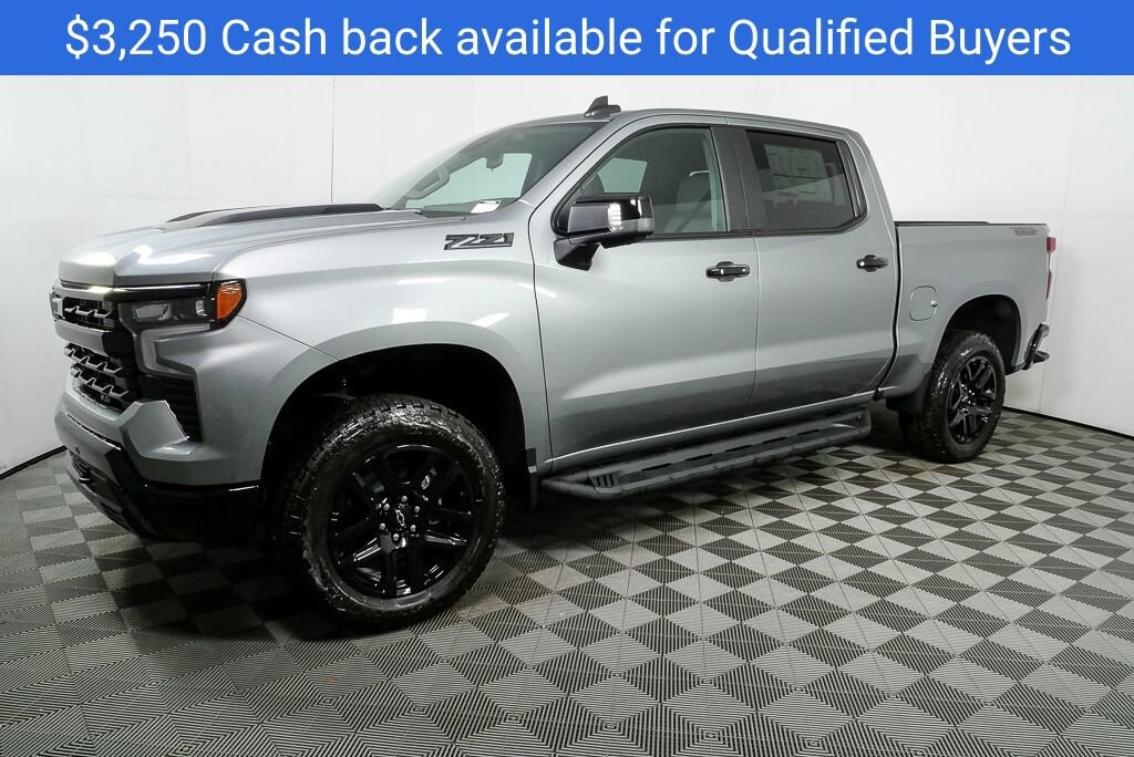 Jim Ellis Chevrolet is delighted to offer this rock solid 2026 Chevrolet Silverado 1500 LT Trail Boss in Sterling Gray Metallic Beautifully equipped with Convenience Package (10-Way Power Driver Seat w/Lumbar, 120-Volt Bed Mounted Power Outlet, 120-Volt Interior Power Outlet, Dual Rear USB Ports (Charge Only), Dual-Zone Automatic Climate Control, Electric Rear-Window Defogger, Heated Driver & Front Outboard Passenger Seats, Heated Steering Wheel, Keyless Open & Start, LED Cargo Area Lighting, Manual Tilt/Telescoping Steering Column, Remote Vehicle Starter System, Theft Deterrent System (Unauthorized Entry), and Wrapped Steering Wheel), Convenience Package II (Hitch Guidance w/Hitch View, In-Vehicle Trailering System App, Power Sliding Rear Window w/Rear Defogger, Premium Bose 7-Speaker Sound System, and Universal Home Remote), Dark Appearance Package (Black Chrome Exhaust Tip (LPO), Front Frame-Mounted Black Recovery Hooks, and Single Outlet Exhaust), Leather Package (Leather-Appointed Front Seat Trim), LT Trail Boss Premium Package (Power Tailgate), Protection Package (Chevytec Spray-On Black Bedliner and Rear Wheelhouse Liners), Safety Package (HD Surround Vision, Perimeter Lighting, Rear Cross Traffic Braking, Rear Pedestrian Alert, Trailer Camera Provisions, Trailer Side Blind Zone Alert, and Ultrasonic Front & Rear Park Assist), Suspension Package (Heavy-Duty Air Filter and Hill Descent Control), Trailering Package (Hitch Guidance), Up-Level Rear Seat w/Storage Package, 10-Speed Automatic, 4WD, H0y Leather, 12.3 Multicolor Reconfigurable Digital Display, 2 USB Data Ports, 220 Amp Alternator, 4-Wheel Disc Brakes, 40/20/40 Front Split-Bench Seat, 6 Speakers, 6-Speaker Audio System, ABS brakes, Adaptive Cruise Control, Air Conditioning, All-Weather Floor Liner (LPO) (AAK), Alloy wheels, AM/FM radio: SiriusXM with 360L, Apple CarPlay/Android Auto, Auto High-beam Headlights, Auto-Locking Rear Differential, Automatic Emergency Braking, Automatic temperature control, Bluetooth® For Phone, Brake assist, Cloth Seat Trim, Color-Keyed Carpeting Floor Covering, Compass, Cruise Control, Deep-Tinted Glass, Delay-off headlights, Driver door bin, Driver vanity mirror, Dual front impact airbags, Dual front side impact airbags, Electronic Cruise Control, Electronic Stability Control, Electronic Transmission Range Selector Shifter, Emergency communication system: OnStar, EZ Lift Power Lock & Release Tailgate, Floor Mounted Center Console, Following Distance Indicator, Forward Collision Alert, Front anti-roll bar, Front Bucket Seats, Front Center Armrest w/Storage, Front dual zone A/C, Front fog lights, Front LED Fog Lamps, Front Pedestrian Braking, Front reading lights, Front wheel independent suspension, Fully automatic headlights, HD Rear Vision Camera, Heated door mirrors, Heated front seats, Heated Power-Adjustable Outside Mirrors, Heated steering wheel, High Gloss Black Mirror Caps, Illuminated entry, Inside Rear-View Mirror w/Tilt, Integrated Trailer Brake Controller, IntelliBeam Automatic High Beam On/Off, Lane Keep Assist w/Lane Departure Warning, Low tire pressure warning, Multi-Flex Tailgate, Occupant sensing airbag, Off-Road Assist Steps (LPO), OnStar Services Capable, Outside temperature display, Overhead airbag, Overhead console, Panic alarm, Passenger door bin, Passenger vanity mirror, Performance Red Recovery Hooks, Power door mirrors, Power driver seat, Power Front Windows w/Driver Express Up/Down, Power Front Windows w/Passenger Express Down, Power Rear Windows w/Express Down, Power steering, Power Sunroof, Power windows, Premium audio system: Chevrolet Infotainment 3 Premium, Radio data system, Radio: Chevrolet Infotainment 3 Premium System, Price does not include Tax, Title and Dealer Fees. $3250 - Chevrolet GM Financial APR & NCC Consumer Cash Program: $3250 discount and 6.39% APR for 36 months. $30.60 per $1000 financed. Available to well qualified buyers who finance through GM Financial. XGQ, NCC. Exp. 01/02/2026