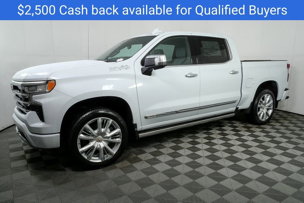 Jim Ellis Chevrolet is proud to offer this reliable 2026 Chevrolet Silverado 1500 High Country in Polar White Tricoat Beautifully equipped with High Capacity Suspension Package, High Country Premium II Super Cruise Package (Power-Retractable Assist Steps, Sport Wrapped Steering Wheel, and Super Cruise), High Country Premium Package (All-Weather Floor Liner (LPO), Power Sunroof, and Wheels: 22 x 9 Painted Aluminum), Technology Package (15 Diagonal Multicolor Head-Up Display and Rear Camera Mirror), Trailering Package (Hitch Guidance), Up-Level Rear Seat w/Storage Package, 10-Speed Automatic, 4WD, H38 Leather, 10-Way Power Driver Seat w/Lumbar, 10-Way Power Passenger Seat Adjuster w/Lumbar, 12.3 Multicolor Reconfigurable Digital Display, 120-Volt Bed Mounted Power Outlet, 120-Volt Interior Power Outlet, 170 Amp Alternator, 2 USB Data Ports, 2nd Row Heated Outboard Seats, 3.23 Rear Axle Ratio, 4-Wheel Disc Brakes, 7 Speakers, ABS brakes, Adaptive Cruise Control, Adaptive Ride Control Suspension, Air Conditioning, Alloy wheels, AM/FM radio: SiriusXM with 360L, Apple CarPlay/Android Auto, Auto High-beam Headlights, Auto-dimming door mirrors, Auto-Dimming Inside Rear-View Mirror, Auto-dimming Rear-View mirror, Auto-Locking Rear Differential, Automatic temperature control, Bed View Camera, Bluetooth® For Phone, Bodyside moldings, Brake assist, Bumpers: body-color, Chevytec Spray-On Black Bedliner, Chrome Assist Steps, Chrome Recovery Hooks, Color-Keyed Carpeting Floor Covering, Compass, Cruise Control, Deep-Tinted Glass, Delay-off headlights, Driver door bin, Driver Memory, Driver vanity mirror, Dual Active Exhaust, Dual Exhaust w/Polished Outlets, Dual front impact airbags, Dual front side impact airbags, Dual Rear USB Ports (Charge Only), Electric Rear-Window Defogger, Electronic Stability Control, Electronic Transmission Range Selector Shifter, Emergency communication system: OnStar, Enhanced Automatic Emergency Braking, Floor Mounted Center Console, Following Distance Indicator, Forward Collision Alert, Front anti-roll bar, Front Bucket Seats, Front Carpeted Floor Mats, Front Center Armrest, Front dual zone A/C, Front fog lights, Front LED Fog Lamps, Front Pedestrian Braking, Front Rain-Sensing Wipers, Front reading lights, Front wheel independent suspension, Fully automatic headlights, Galvano Silver Painted Mirror Caps, Garage door transmitter, Genuine wood console insert, Genuine wood dashboard insert, Genuine wood door panel insert, HD Surround Vision, Heated door mirrors, Heated Driver & Front Outboard Passenger Seats, Heated front seats, Heated rear seats, Heated Steering Wheel, Heated steering wheel, Hitch Guidance w/Hitch View, Illuminated entry, In-Vehicle Trailering System App, Integrated Trailer Brake Controller, IntelliBeam Automatic High Beam On/Off, Keyless Open & Start, Lane Keep Assist w/Lane Departure Warning, LED Cargo Area Lighting, Low tire pressure warning, Memory seat, Multi-Flex Tailgate, Occupant sensing airbag, OnStar Services Capable, Outside Heated Power-Adjustable Mirrors, Outside temperature display, Overhead airbag, Overhead console, Panic alarm, Passenger door bin, Passenger vanity mirror, Perforated Leather Seat Trim, Perimeter Lighting, Power door mirrors, Power driver seat, Power Front Passenger Windows w/Express Up/Down, Power Front Windows w/Driver Express Up/Down, Power passenger seat, Power Rear Windows w/Express Down, Power Sliding Rear Window w/Rear Defogger, Power steering, Power Tailgate, Power Tilt & Telescoping Steering Column, Power windows, Premium audio system: Chevrolet Infotainment 3 Premium, Premium Bose 7-Speaker Sound System, Radio data system, Radio: Chevrolet Infotainment 3 Premium System, Rai Price does not include Tax, Title and Dealer Fees. $2500 - Chevrolet GM Financial APR & NCC Consumer Cash Program: $2500 discount and 6.39% APR for 36 months. $30.60 per $1000 financed. Available to well qualified buyers who finance through GM Financial. XGQ, NCC. Exp. 02/02/2026