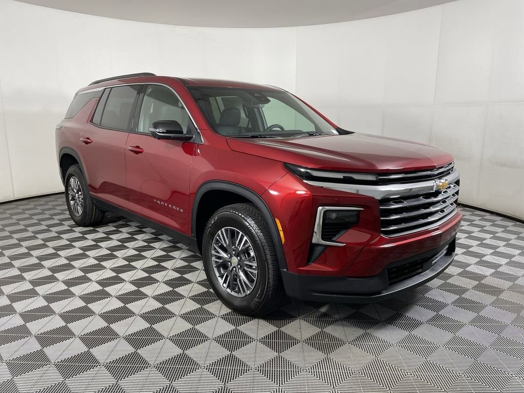 Jim Ellis Chevrolet is honored to offer this wonderful 2026 Chevrolet Traverse LT in Radiant Red Tintcoat Beautifully equipped with Driver Confidence Package (HD Surround Vision, Key Card, Power Outlet, Rear Camera Mirror, Rear Pedestrian Alert, and Traffic Sign Recognition), Floor Liner Package (LPO) (1st & 2nd Row All-Weather Floor Liners (LPO), 3rd Row All-Weather Floor Liner (LPO), and Integrated Cargo Liner (LPO)), Preferred Equipment Group 2LT, AWD, 3rd row seats: split-bench, 4-Way Manual Front Passenger Seat Adjuster, 4-Wheel Disc Brakes, 6 Speakers, 6-Speaker Audio System Feature, 8-Way Power Driver Seat Adjuster, ABS brakes, Air Conditioning, Alloy wheels, AM/FM radio: SiriusXM with 360L, Apple CarPlay/Android Auto, Auto High-beam Headlights, Automatic temperature control, Brake assist, Bumpers: body-color, Child-Seat-Sensing Airbag, Compass, Cruise Control, Delay-off headlights, Driver door bin, Driver vanity mirror, Dual front impact airbags, Dual front side impact airbags, Electronic Stability Control, Emergency communication system: OnStar, Four wheel independent suspension, Front anti-roll bar, Front Bucket Seats, Front Center Armrest, Front dual zone A/C, Front reading lights, Fully automatic headlights, Heated door mirrors, Heated Driver & Front Passenger Seats, Heated front seats, Heated steering wheel, Illuminated entry, Low tire pressure warning, Navigation System, Occupant sensing airbag, Outside temperature display, Overhead airbag, Overhead console, Panic alarm, Passenger door bin, Passenger vanity mirror, Power door mirrors, Power driver seat, Power Liftgate, Power steering, Power windows, Premium Cloth Seat Trim, Radio data system, Radio: Audio System w/17.7 Diagonal Display, Rear air conditioning, Rear anti-roll bar, Rear reading lights, Rear window defroster, Rear window wiper, Remote keyless entry, Security system, SiriusXM w/360L Trial Subscription, Speed-sensing steering, Spoiler, Steering wheel mounted audio controls, Tachometer, Telescoping steering wheel, Tilt steering wheel, Traction control, Trip computer, Turn signal indicator mirrors, Variably intermittent wipers, Voltmeter, and Wheels: 18 Grazen Metallic Machined-Face Aluminum! AWD.