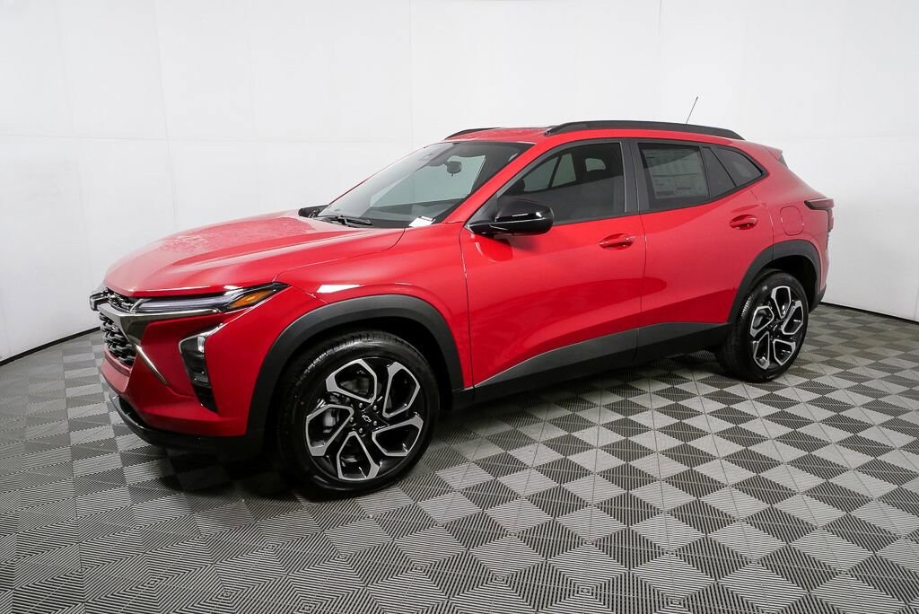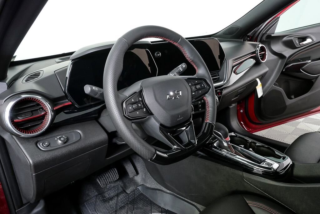 Heated Driver Seat, Back-Up Camera, Satellite Radio, Onboard Communications System, Aluminum Wheels, Remote Engine Start, WiFi Hotspot, Lane Keeping Assist, Heated Seats. Rear Spoiler, Privacy Glass, Keyless Entry, Steering Wheel Controls. Chevrolet 2RS with Apex Red exterior and Jet Black with Red accents interior features a 3 Cylinder Engine with 137 HP at 5000 RPM*.