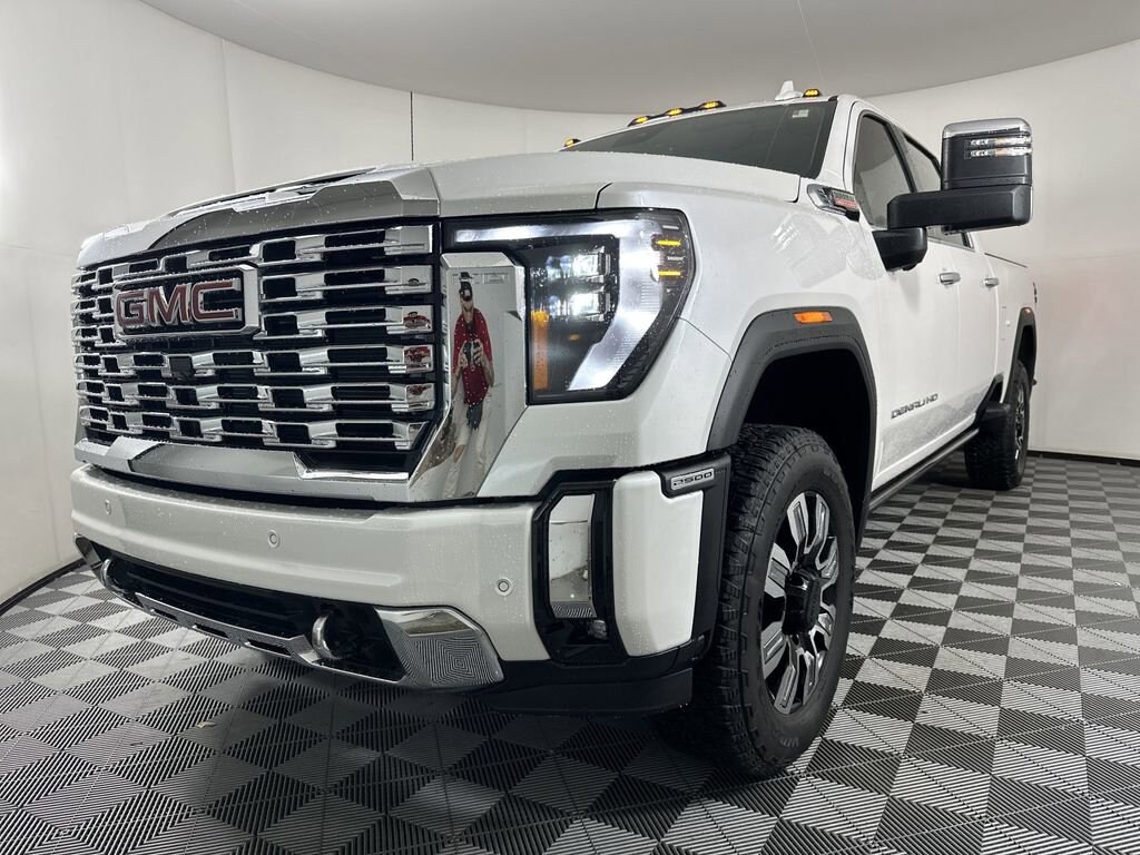 White Frost Tricoat 2025 GMC Sierra 2500HD Denali 4WD 10-Speed Automatic Duramax 6.6L V8 Turbodiesel 10-Speed Automatic, 4WD, Black Leather.