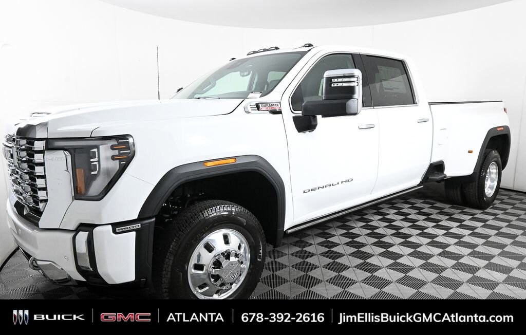 Jim Ellis Buick GMC is proud to offer this good-looking 2025 GMC Sierra 3500HD Denali in Summit White Beautifully equipped with Denali Reserve Package (Power Sunroof), Gooseneck/5th Wheel Prep Package, Preferred Equipment Group 5SA (120-Volt Bed Mounted Power Outlet, 120-Volt Instrument Panel Power Outlet, 2 Charge-Only Rear USB Ports, 2 Charge/Data USB Ports Inside Center Console, 2 USB Ports, 2-Speed Active Transfer Case, Bed View Camera w/2 Trailer Camera Provisions, Bose Premium 7-Speaker Sound System, Deep-Tinted Glass, Electric Rear-Window Defogger, Floor-Mounted Center Console, Front Rain-Sensing Wipers, HD Surround Vision, Heated 2nd Row Outboard Seats, Heated Driver & Front Outboard Passenger Seats, Keyless Open & Start, LED Cargo Area Lighting, LED Smoked Amber Roof Marker Lamps, Manual Tilt-Wheel/Telescoping Steering Column, Polished Exhaust Tip, Power Front Windows w/Passenger Express Up/Down, Power Sliding Rear Window w/Defogger, Push Button Start, Rear Cross Traffic Alert, Remote Vehicle Starter System, Safety Alert Seat, Signature Chrome Denali Grille, SiriusXM w/360L Trial Subscription, Spray-On Pickup Bedliner w/GMC Logo, Steering Wheel Audio Controls, Trailer Camera Provisions, Trailer Side Blind Zone Alert, Ultrasonic Front & Rear Park Assist, Unauthorized Entry Theft-Deterrent System, Universal Home Remote, Ventilated Driver & Front Passenger Seats, Wireless Charging, and Wireless Phone Projection), Technology Package (Auto-Dimming Inside Rearview Mirror w/Camera and Multicolor 15 Diagonal Head-Up Display), 10-Speed Automatic, 4WD, Black Leather, 12-Way Power Driver Seat Adjuster w/Lumbar, 12-Way Power Passenger Seat Adjuster w/Lumbar, 220 Amp Alternator, 3 Years SiriusXM, 4-Wheel Disc Brakes, 7 Speakers, ABS brakes, Air Conditioning, Alloy wheels, AM/FM radio: SiriusXM with 360L, Auto High-beam Headlights, Auto-dimming door mirrors, Auto-dimming Rear-View mirror, Automatic Emergency Braking, Automatic temperature control, Brake assist, Buckle to Drive, Bumpers: body-color, Compass, Delay-off headlights, Driver door bin, Driver Memory, Driver vanity mirror, Dual front impact airbags, Dual front side impact airbags, Electronic Stability Control, Engine Block Heater, Exhaust Brake, Exterior Parking Camera Rear, Following Distance Indicator, Forge Perforated Leather Seat Trim, Forward Collision Alert, Front anti-roll bar, Front Bucket Seats, Front Center Armrest, Front dual zone A/C, Front fog lights, Front Pedestrian Braking, Front reading lights, Front wheel independent suspension, Fully automatic headlights, Garage door transmitter, Genuine wood dashboard insert, Genuine wood door panel insert, GMC MultiPro Tailgate Step Lights (LPO), GMC Premium 13.4 Diagonal Information Display, Heated door mirrors, Heated front seats, Heated rear seats, Heated steering wheel, Heavy-Duty 80 Amp-Hr Battery, Hitch Guidance w/Hitch View, Illuminated entry, IntelliBeam Automatic High Beam On/Off, Lane Departure Warning System, Low tire pressure warning, Memory seat, Occupant sensing airbag, Outside temperature display, Overhead airbag, Overhead console, Panic alarm, Passenger door bin, Passenger vanity mirror, Pickup Bed, Power door mirrors, Power driver seat, Power passenger seat, Power steering, Power windows, Power-Retractable Assist Steps, Radio: AM/FM w/Premium GMC Infotainment System, Rain sensing wipers, Rear reading lights, Rear seat center armrest, Rear step bumper, Rear Underseat Storage (LPO), Rear window defroster, Remote keyless entry, Security system, Speed control, Speed-sensing steering, Split folding rear seat, Steering wheel mounted audio controls, Tachometer, Telescoping steering wheel, Tilt steering wheel, Traction control, Trailer Tire Pressure Monitor Sensors, Trip computer, Turn signal indicator mirrors, Variably intermittent wipers, Ventilated front seats, Voltmeter, and Winter Grille Cover !