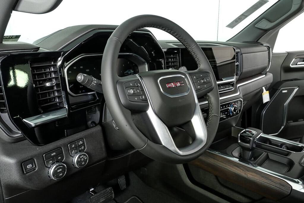 Onyx Black 2026 GMC Sierra 1500 SLT 4WD 10-Speed Automatic EcoTec3 5.3L V8 10-Speed Automatic, 4WD, H1y Jet Black Leather.