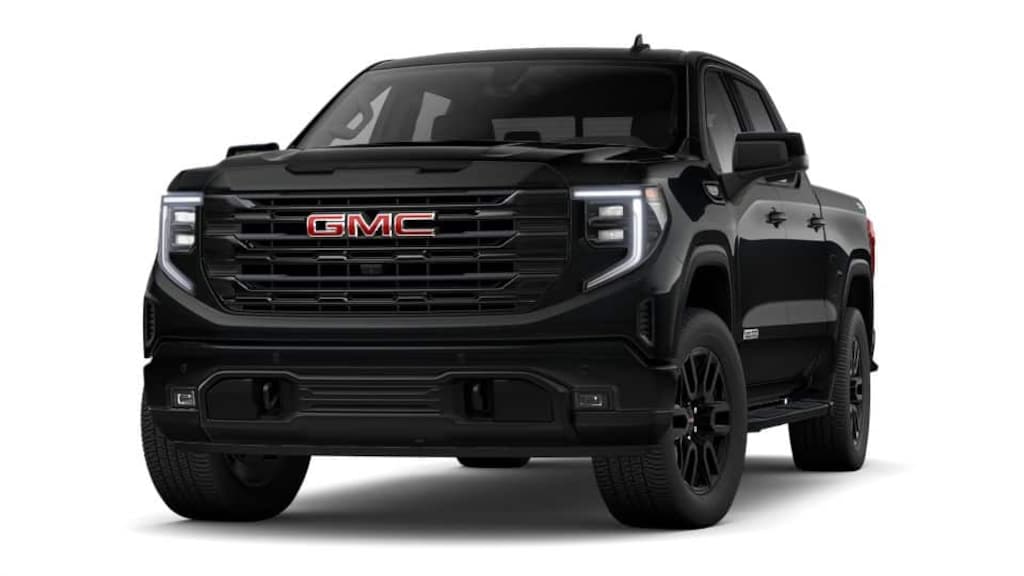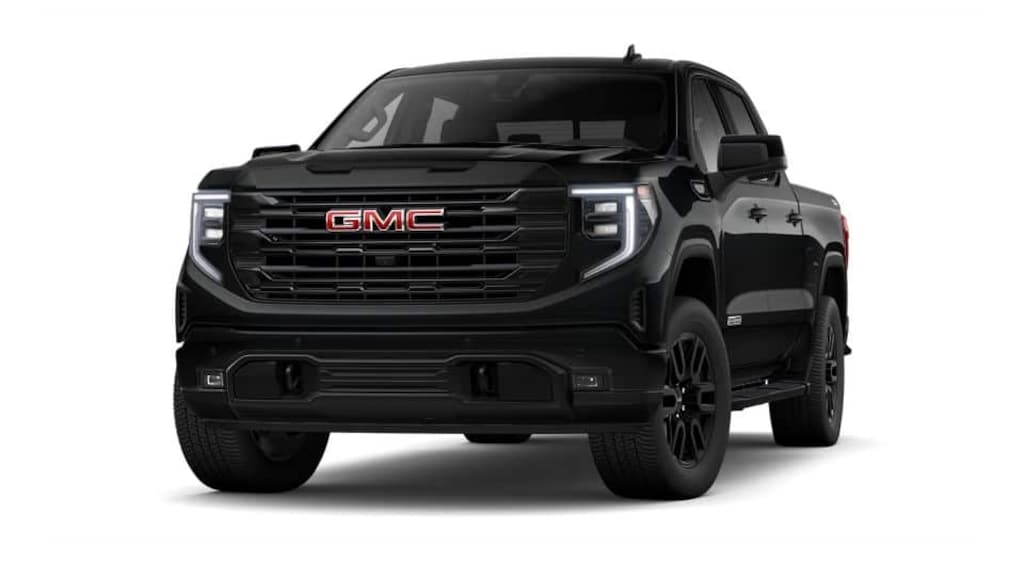 Onyx Black 2026 GMC Sierra 1500 Elevation 4WD 10-Speed Automatic EcoTec3 5.3L V8 10-Speed Automatic, 4WD, Black Leather.