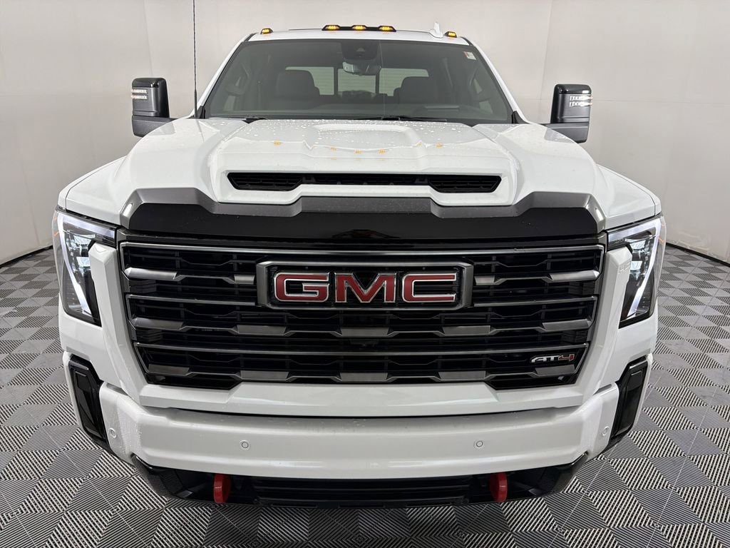 Summit White 2026 GMC Sierra 2500HD AT4 4WD 10-Speed Automatic Duramax 6.6L V8 Turbodiesel 10-Speed Automatic, 4WD, Jet Black With Kalahari Accents Leather.