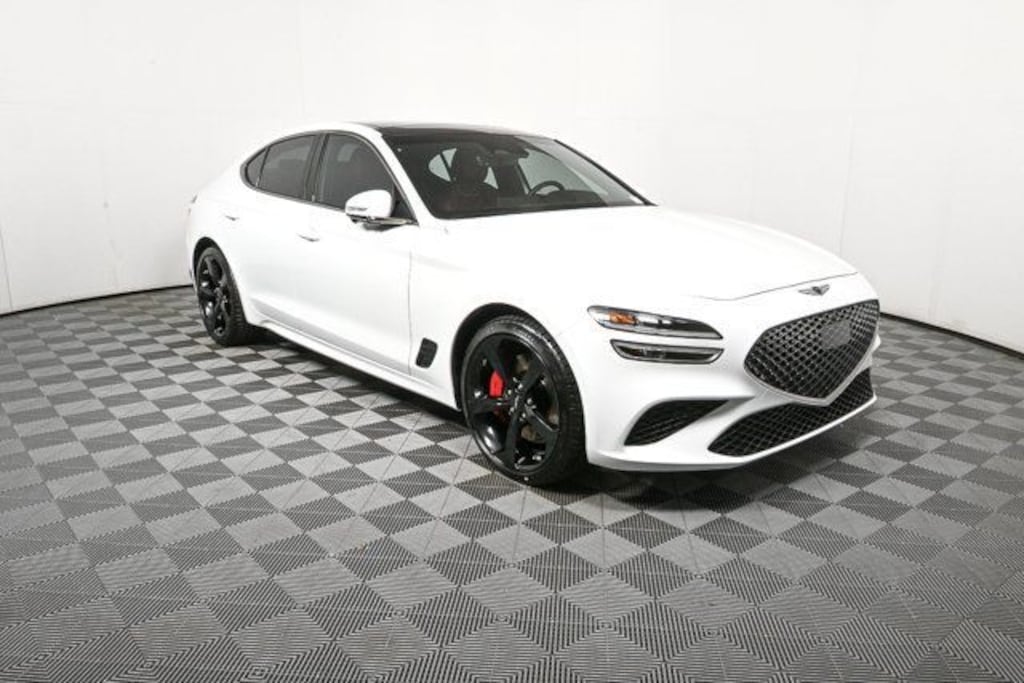 Dealer installed Options:Window Tint $495, Paint & Fabric Protect (Optional Warranty Available) $495. This 2026 Genesis G70 is equipped with 15 Speakers, 4-Wheel Disc Brakes, ABS brakes, Air Conditioning, Alloy wheels, AM/FM radio: SiriusXM, Android Auto & Apple CarPlay, Anti-whiplash front head restraints, Auto High-beam Headlights, Auto-dimming door mirrors, Auto-dimming Rear-View mirror, Automatic temperature control, Brake assist, Bumpers: body-color, Delay-off headlights, Driver door bin, Driver vanity mirror, Dual front impact airbags, Dual front side impact airbags, Electronic Stability Control, Emergency communication system: Genesis Connected Services, Exterior Parking Camera Rear, First Aid Kit, Four wheel independent suspension, Front anti-roll bar, Front Bucket Seats, Front Center Armrest, Front dual zone A/C, Front reading lights, Fully automatic headlights, Garage door transmitter: HomeLink, Heads-Up Display, Heated door mirrors, Heated front seats, Heated steering wheel, Htd & Ventilated Multi-Adjustable Fr Bucket Seats, Illuminated entry, Knee airbag, Leather Seating Surfaces, Low tire pressure warning, Memory seat, Mudguards, Navigation System, Occupant sensing airbag, Outside temperature display, Overhead airbag, Overhead console, Panic alarm, Passenger door bin, Passenger vanity mirror, Power door mirrors, Power driver seat, Power moonroof, Power passenger seat, Power steering, Power windows, Radio: AM/FM/SiriusXM/HD Lexicon Prem Audio System, Rain sensing wipers, Rear anti-roll bar, Rear reading lights, Rear seat center armrest, Rear side impact airbag, Rear window defroster, Remote keyless entry, Reversible Cargo Tray, Security system, Speed control, Speed-sensing steering, Speed-Sensitive Wipers, Split folding rear seat, Steering wheel memory, Steering wheel mounted audio controls, Tachometer, Telescoping steering wheel, Traction control, Trip computer, Turn signal indicator mirrors, Variably intermittent wipers, Ventilated front seats, and Wheels: 19" x 8.0J Fr & 19" x 8.5J Rr Sport Alloy. Not all rebates are compatible with all finance programs. Please see dealer for details and final price. $1000 - Genesis Retailer Choice: $1000 discount and 5.99% APR for 24 months. $44.32 per $1000 financed. Available to well qualified buyers who finance through Genesis Finance. G704. Exp. 11/03/2025