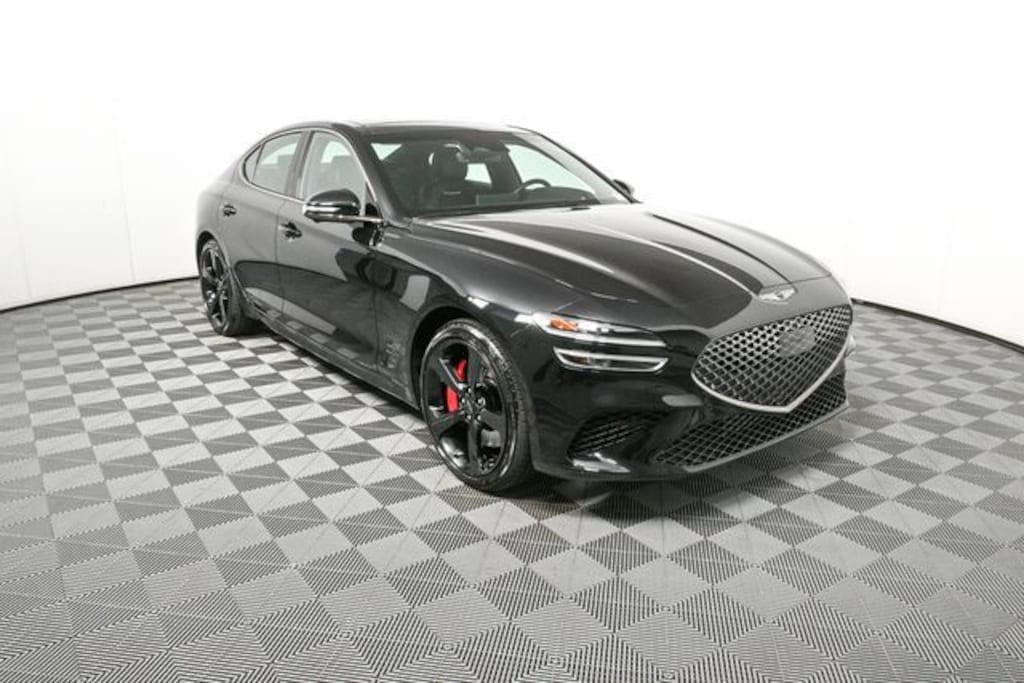 Dealer installed Options:Window Tint $495, Paint & Fabric Protect (Optional Warranty Available) $495, ABS brakes, Active Cruise Control, Alloy wheels, Electronic Stability Control, Front dual zone A/C, Heated door mirrors, Heated front seats, Illuminated entry, Low tire pressure warning, Navigation System, Power moonroof, Remote keyless entry, Traction control. This 2026 Genesis G70 is equipped with ABS brakes, Active Cruise Control, Alloy wheels, Electronic Stability Control, Front dual zone A/C, Heated door mirrors, Heated front seats, Illuminated entry, Low tire pressure warning, Navigation System, Power moonroof, Remote keyless entry, Traction control, 15 Speakers, 4-Wheel Disc Brakes, Air Conditioning, AM/FM radio: SiriusXM, Android Auto & Apple CarPlay, Anti-whiplash front head restraints, Auto High-beam Headlights, Auto-dimming door mirrors, Auto-dimming Rear-View mirror, Automatic temperature control, Brake assist, Bumpers: body-color, Delay-off headlights, Driver door bin, Driver vanity mirror, Dual front impact airbags, Dual front side impact airbags, Emergency communication system: Genesis Connected Services, Exterior Parking Camera Rear, Four wheel independent suspension, Front anti-roll bar, Front Bucket Seats, Front Center Armrest, Front reading lights, Fully automatic headlights, Garage door transmitter: HomeLink, Heads-Up Display, Heated steering wheel, Htd & Ventilated Multi-Adjustable Fr Bucket Seats, Knee airbag, Leather Seating Surfaces, Memory seat, Occupant sensing airbag, Outside temperature display, Overhead airbag, Overhead console, Panic alarm, Passenger door bin, Passenger vanity mirror, Power door mirrors, Power driver seat, Power passenger seat, Power steering, Power windows, Radio: AM/FM/SiriusXM/HD Lexicon Prem Audio System, Rain sensing wipers, Rear anti-roll bar, Rear reading lights, Rear seat center armrest, Rear side impact airbag, Rear window defroster, Security system, Speed control, Speed-sensing steering, Speed-Sensitive Wipers, Split folding rear seat, Steering wheel memory, Steering wheel mounted audio controls, Tachometer, Telescoping steering wheel, Trip computer, Turn signal indicator mirrors, Variably intermittent wipers, Ventilated front seats, and Wheels: 19" x 8.0J Fr & 19" x 8.5J Rr Sport Alloy. Not all rebates are compatible with all finance programs. Please see dealer for details and final price. $1000 - Genesis Retailer Choice: $1000 discount and 5.99% APR for 24 months. $44.32 per $1000 financed. Available to well qualified buyers who finance through Genesis Finance. G704. Exp. 11/03/2025