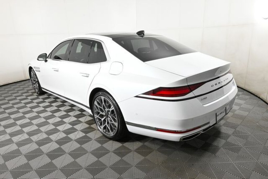 ABS brakes, Active Cruise Control, Alloy wheels, Compass, Electronic Stability Control, Front Bucket Seats, Front Center Armrest, Front dual zone A/C, Heated front seats, Heated rear seats, Illuminated entry, Low tire pressure warning, Navigation System, Power moonroof, Power passenger seat, Remote keyless entry, Traction control, Ventilated Front AND Rear Seats, Ventilated front seats. This 2026 Genesis G90 is equipped with ABS brakes, Active Cruise Control, Alloy wheels, Compass, Electronic Stability Control, Front Bucket Seats, Front Center Armrest, Front dual zone A/C, Heated front seats, Heated rear seats, Illuminated entry, Low tire pressure warning, Navigation System, Power moonroof, Power passenger seat, Remote keyless entry, Traction control, Ventilated Front AND Rear Seats, Ventilated front seats, 4-Wheel Disc Brakes, Adaptive suspension, Air Conditioning, AM/FM radio: SiriusXM, Anti-whiplash front head restraints, Auto High-beam Headlights, Auto tilt-away steering wheel, Auto-dimming door mirrors, Auto-dimming Rear-View mirror, Auto-leveling suspension, Automatic temperature control, Brake assist, Bumpers: body-color, Delay-off headlights, Driver door bin, Driver vanity mirror, Dual front impact airbags, Dual front side impact airbags, Emergency communication system: Genesis Connected Services, Exterior Parking Camera Rear, Four wheel independent suspension, Front anti-roll bar, Front reading lights, Fully automatic headlights, Garage door transmitter: HomeLink, Genuine wood console insert, Heads-Up Display, Heated steering wheel, Knee airbag, Memory seat, Nappa Leather Seating Surfaces, Occupant sensing airbag, Outside temperature display, Overhead airbag, Overhead console, Panic alarm, Passenger door bin, Passenger vanity mirror, Power adjustable rear head restraints, Power door mirrors, Power driver seat, Power steering, Power windows, Radio data system, Radio: AM/FM Bang & Olufsen 3D Prem Audio System, Rain sensing wipers, Rear air conditioning, Rear anti-roll bar, Rear reading lights, Rear seat center armrest, Rear side impact airbag, Rear Window Blind, Rear window defroster, Security system, Speed control, Speed-sensing steering, Speed-Sensitive Wipers, Steering wheel memory, Steering wheel mounted audio controls, Tachometer, Telescoping steering wheel, Tilt steering wheel, Trip computer, Variably intermittent wipers, Ventilated rear seats, and Wheels: 21" x 8.5J Fr & 21" x 9.5J Rr Alloy.