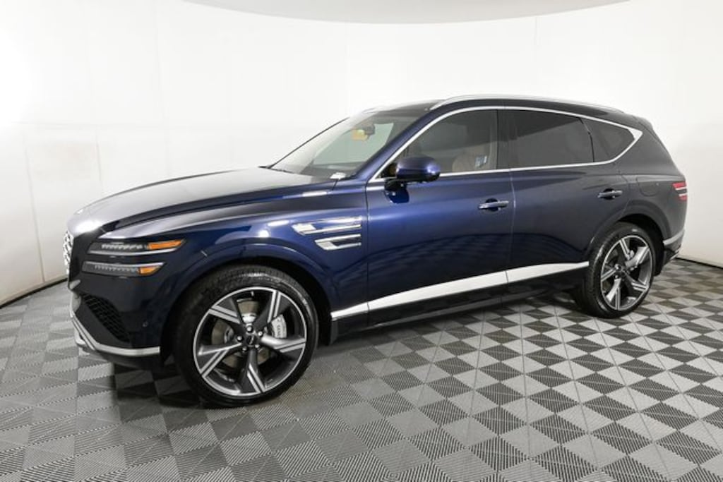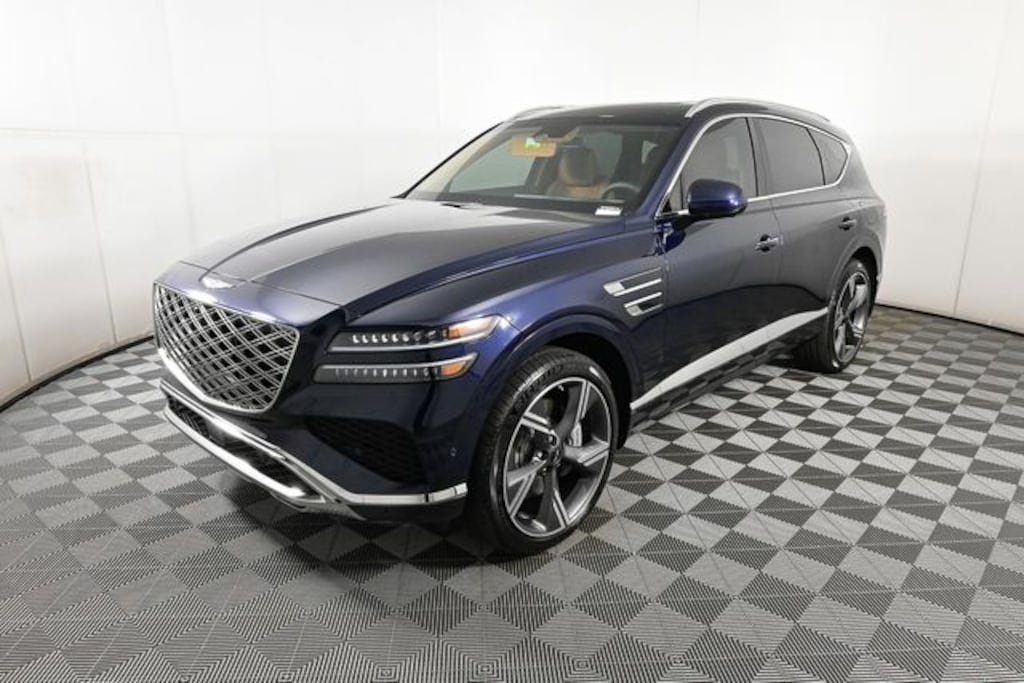 ABS brakes, Active Cruise Control, Alloy wheels, Compass, Electronic Stability Control, Front dual zone A/C, Heated door mirrors, Heated front seats, Heated rear seats, Illuminated entry, Low tire pressure warning, Navigation System, Power Liftgate, Power moonroof, Rear dual zone A/C, Remote keyless entry, Traction control, Ventilated Front AND Rear Seats. This 2026 Genesis GV80 is equipped with ABS brakes, Active Cruise Control, Alloy wheels, Compass, Electronic Stability Control, Front dual zone A/C, Heated door mirrors, Heated front seats, Heated rear seats, Illuminated entry, Low tire pressure warning, Navigation System, Power Liftgate, Power moonroof, Rear dual zone A/C, Remote keyless entry, Traction control, Ventilated Front AND Rear Seats, 18 Speakers, 3rd row seats: split-bench, 4-Wheel Disc Brakes, Adaptive suspension, Air Conditioning, AM/FM radio: SiriusXM, Anti-whiplash front head restraints, Auto High-beam Headlights, Auto tilt-away steering wheel, Auto-dimming door mirrors, Auto-dimming Rear-View mirror, Automatic temperature control, Brake assist, Bumpers: body-color, Delay-off headlights, Driver door bin, Driver vanity mirror, Dual front impact airbags, Dual front side impact airbags, Emergency communication system: Genesis Connected Services, Exterior Parking Camera Rear, Four wheel independent suspension, Front anti-roll bar, Front Bucket Seats, Front Center Armrest, Front reading lights, Fully automatic headlights, Garage door transmitter: HomeLink, Genuine wood console insert, Genuine wood dashboard insert, Genuine wood door panel insert, Heads-Up Display, Heated steering wheel, Knee airbag, Leather steering wheel, Memory seat, Nappa Leather Seating Surfaces, Occupant sensing airbag, Outside temperature display, Overhead airbag, Overhead console, Panic alarm, Passenger door bin, Passenger vanity mirror, Power door mirrors, Power driver seat, Power passenger seat, Power steering, Power windows, Radio data system, Radio: AM/FM/SiriusXM/HD Bang & Olufsen Sound Sys, Rain sensing wipers, Rear air conditioning, Rear anti-roll bar, Rear reading lights, Rear seat center armrest, Rear side impact airbag, Rear window defroster, Rear window wiper, Reclining 3rd row seat, Security system, Speed control, Speed-sensing steering, Speed-Sensitive Wipers, Split folding rear seat, Spoiler, Steering wheel memory, Steering wheel mounted audio controls, Tachometer, Telescoping steering wheel, Tilt steering wheel, Trip computer, Turn signal indicator mirrors, Variably intermittent wipers, Ventilated front seats, Ventilated rear seats, and Wheels: 22" x 9.5J Dark Gray Matte Alloy.