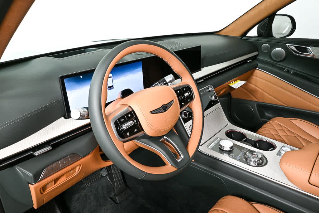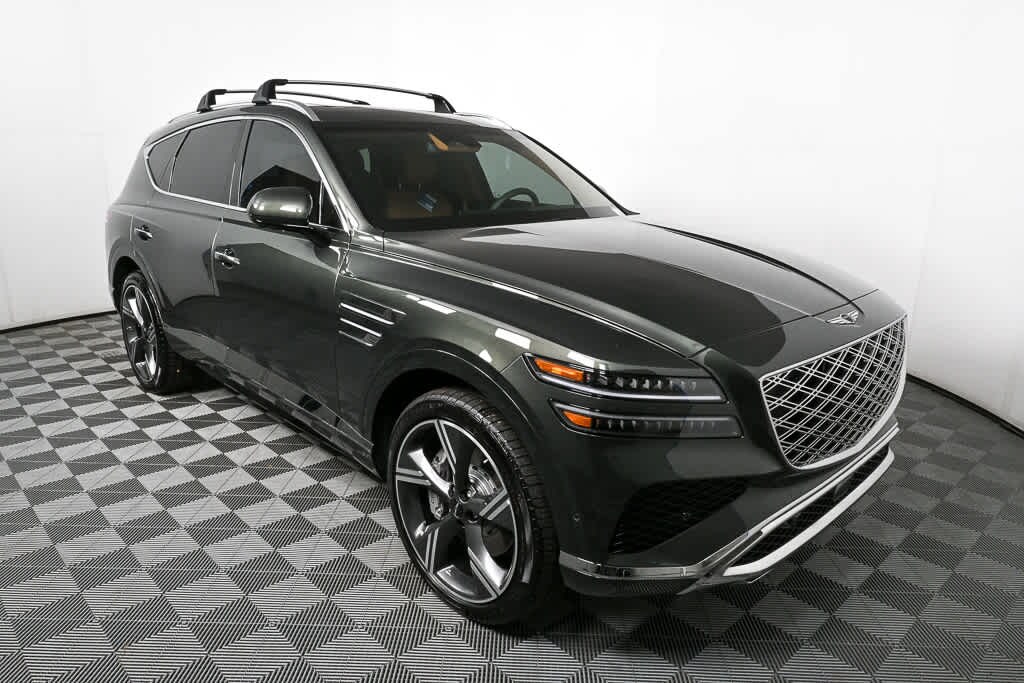 Leather Seats, Third Row Seat, Navigation, All Wheel Drive, Power Liftgate, Rear Air, Heated Driver Seat, Heated Rear Seat, Cooled Driver Seat, Cooled Rear Seat. Rear Spoiler, MP3 Player, Keyless Entry, Privacy Glass. Genesis Prestige with Storr Green exterior and Earth Brown/Smoky Green interior features a V6 Cylinder Engine with 375 HP at 5800 RPM*.