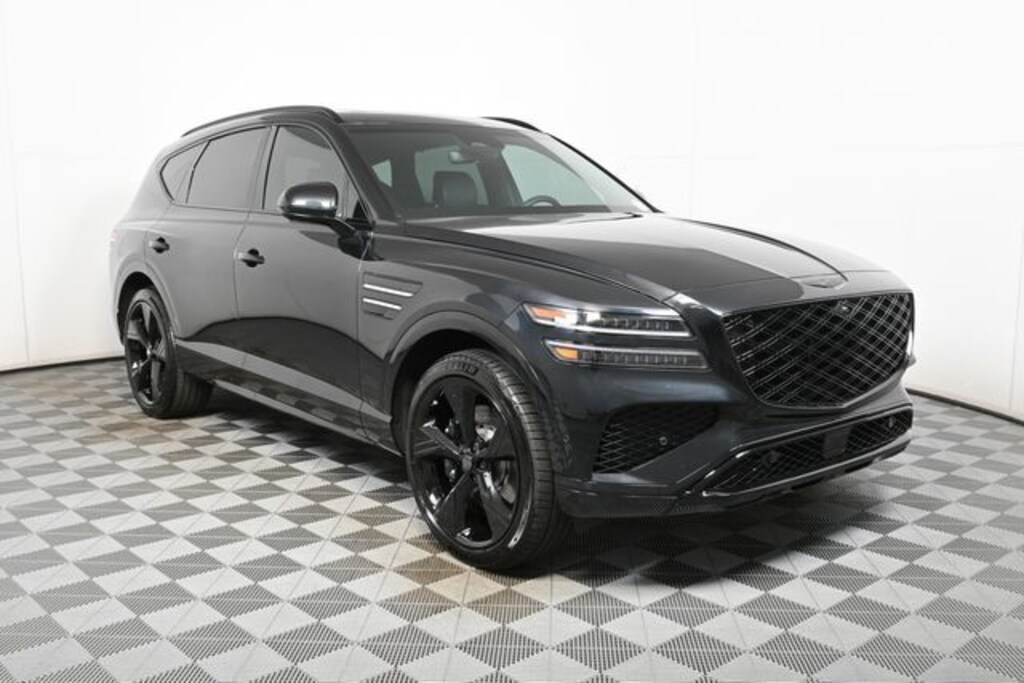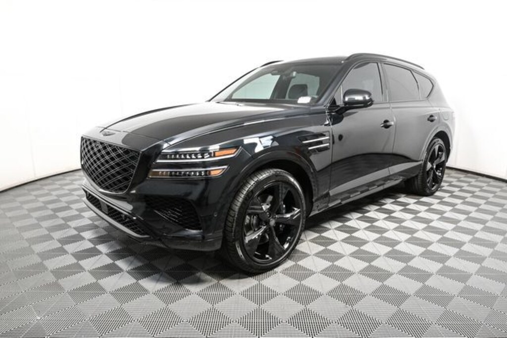 This 2026 Genesis GV80 is equipped with Option Group 01, 18 Speakers, 4-Wheel Disc Brakes, ABS brakes, Adaptive suspension, Air Conditioning, Alloy wheels, AM/FM radio: SiriusXM, Anti-whiplash front head restraints, Auto High-beam Headlights, Auto tilt-away steering wheel, Auto-dimming door mirrors, Auto-dimming Rear-View mirror, Automatic temperature control, Brake assist, Compass, Delay-off headlights, Driver door bin, Driver vanity mirror, Dual front impact airbags, Dual front side impact airbags, Electronic Stability Control, Emergency communication system: Genesis Connected Services, Exterior Parking Camera Rear, Four wheel independent suspension, Front anti-roll bar, Front Bucket Seats, Front Center Armrest, Front dual zone A/C, Front reading lights, Fully automatic headlights, Garage door transmitter: HomeLink, Genuine wood console insert, Genuine wood dashboard insert, Genuine wood door panel insert, Heads-Up Display, Heated door mirrors, Heated front seats, Heated rear seats, Heated steering wheel, Illuminated entry, Knee airbag, Leather steering wheel, Low tire pressure warning, Memory seat, Nappa Leather Seating Surfaces, Navigation System, Occupant sensing airbag, Outside temperature display, Overhead airbag, Overhead console, Panic alarm, Passenger door bin, Passenger vanity mirror, Power door mirrors, Power driver seat, Power Liftgate, Power moonroof, Power passenger seat, Power steering, Power windows, Radio data system, Radio: AM/FM/SiriusXM/HD Bang & Olufsen Sound Sys, Rain sensing wipers, Rear air conditioning, Rear anti-roll bar, Rear dual zone A/C, Rear reading lights, Rear seat center armrest, Rear side impact airbag, Rear window defroster, Rear window wiper, Remote keyless entry, Security system, Speed control, Speed-sensing steering, Speed-Sensitive Wipers, Split folding rear seat, Spoiler, Steering wheel memory, Steering wheel mounted audio controls, Tachometer, Telescoping steering wheel, Tilt steering wheel, Traction control, Trip computer, Turn signal indicator mirrors, Variably intermittent wipers, Ventilated Front AND Rear Seats, Ventilated front seats, Ventilated rear seats, and Wheels: 22" x 9.5J Gloss Black Finish Alloy.