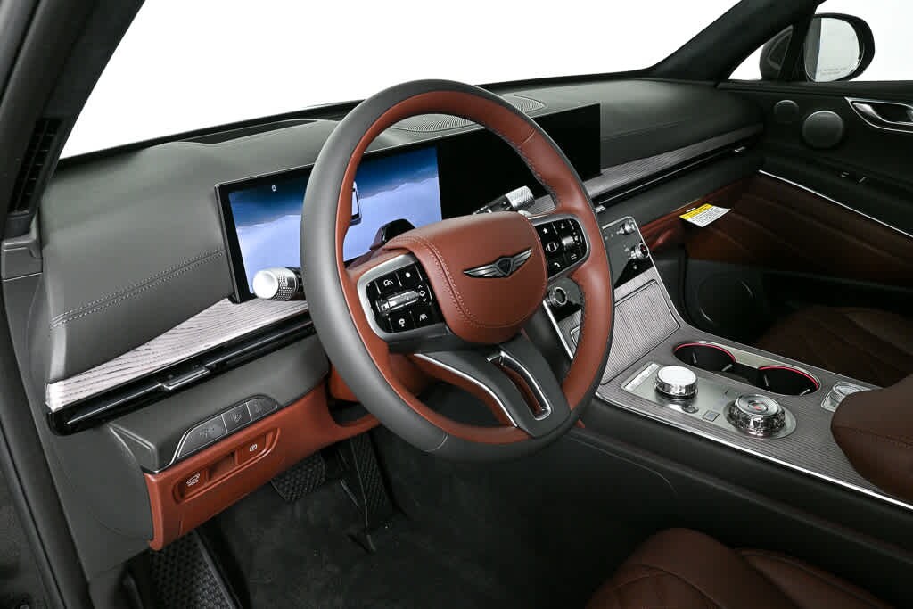 Leather Seats, Third Row Seat, Navigation, All Wheel Drive, Power Liftgate, Rear Air, Heated Driver Seat, Heated Rear Seat, Cooled Driver Seat, Cooled Rear Seat. Rear Spoiler, MP3 Player, Keyless Entry, Privacy Glass. Genesis Prestige with Makalu Gray exterior and Bordeaux Brown/Slate Gray interior features a V6 Cylinder Engine with 375 HP at 5800 RPM*.