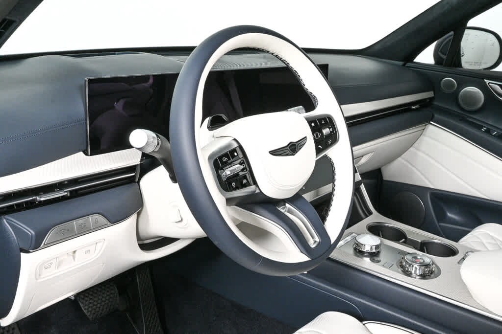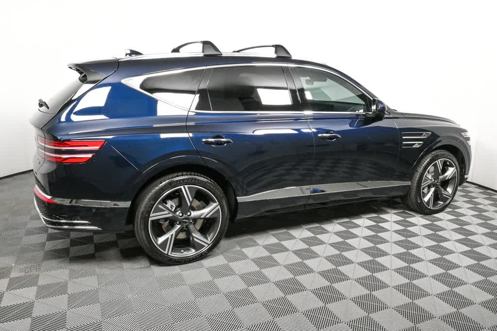 Leather Seats, Third Row Seat, Navigation, All Wheel Drive, Power Liftgate, Rear Air, Heated Driver Seat, Heated Rear Seat, Cooled Driver Seat, Cooled Rear Seat. Rear Spoiler, MP3 Player, Keyless Entry, Privacy Glass. Genesis Prestige with Capri Blue exterior and Glacier White/Blue interior features a V6 Cylinder Engine with 375 HP at 5800 RPM*.