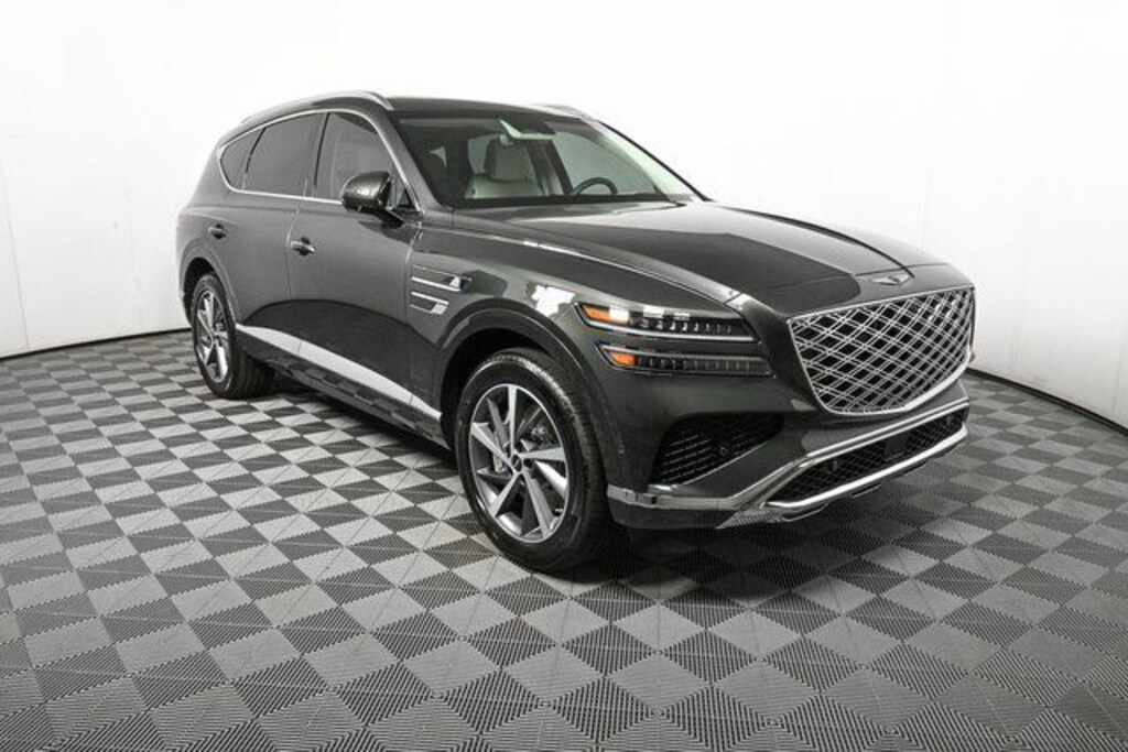 Dealer installed Options:Window Tint $495, Paint & Fabric Protect (Optional Warranty Available) $495, ABS brakes, Active Cruise Control, Alloy wheels, Compass, Electronic Stability Control, Front dual zone A/C, Heated door mirrors, Heated front seats, Heated rear seats, Illuminated entry, Low tire pressure warning, Navigation System, Power Liftgate, Power moonroof, Rear dual zone A/C, Remote keyless entry, Traction control, Ventilated Front AND Rear Seats. This 2026 Genesis GV80 is equipped with ABS brakes, Active Cruise Control, Alloy wheels, Compass, Electronic Stability Control, Front dual zone A/C, Heated door mirrors, Heated front seats, Heated rear seats, Illuminated entry, Low tire pressure warning, Navigation System, Power Liftgate, Power moonroof, Rear dual zone A/C, Remote keyless entry, Traction control, Ventilated Front AND Rear Seats, 18 Speakers, 3rd row seats: split-bench, 4-Wheel Disc Brakes, Adaptive suspension, Air Conditioning, AM/FM radio: SiriusXM, Anti-whiplash front head restraints, Auto High-beam Headlights, Auto tilt-away steering wheel, Auto-dimming door mirrors, Auto-dimming Rear-View mirror, Automatic temperature control, Brake assist, Bumpers: body-color, Delay-off headlights, Driver door bin, Driver vanity mirror, Dual front impact airbags, Dual front side impact airbags, Emergency communication system: Genesis Connected Services, Exterior Parking Camera Rear, Four wheel independent suspension, Front anti-roll bar, Front Bucket Seats, Front Center Armrest, Front reading lights, Fully automatic headlights, Garage door transmitter: HomeLink, Genuine wood console insert, Genuine wood dashboard insert, Genuine wood door panel insert, Heads-Up Display, Heated steering wheel, Knee airbag, Leather Seating Surfaces, Leather steering wheel, Memory seat, Occupant sensing airbag, Outside temperature display, Overhead airbag, Overhead console, Panic alarm, Passenger door bin, Passenger vanity mirror, Power door mirrors, Power driver seat, Power passenger seat, Power steering, Power windows, Radio data system, Radio: AM/FM/SiriusXM/HD Bang & Olufsen Sound Sys, Rain sensing wipers, Rear air conditioning, Rear anti-roll bar, Rear reading lights, Rear seat center armrest, Rear side impact airbag, Rear window defroster, Rear window wiper, Reclining 3rd row seat, Security system, Speed control, Speed-sensing steering, Speed-Sensitive Wipers, Split folding rear seat, Spoiler, Steering wheel memory, Steering wheel mounted audio controls, Tachometer, Telescoping steering wheel, Tilt steering wheel, Trip computer, Turn signal indicator mirrors, Variably intermittent wipers, Ventilated front seats, and Wheels: 20" x 8.5J Dark Gray Matte Alloy.