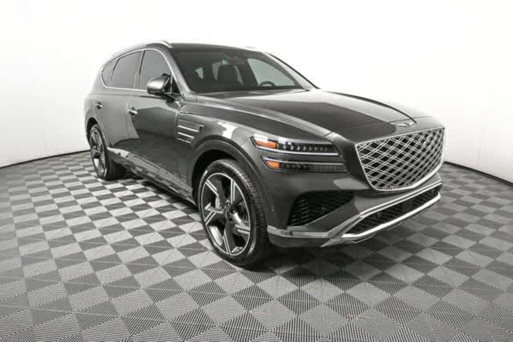 Leather Seats, Third Row Seat, Navigation, All Wheel Drive, Power Liftgate, Rear Air, Heated Driver Seat, Heated Rear Seat, Cooled Driver Seat, Cooled Rear Seat Rear Spoiler, MP3 Player, Privacy Glass, Keyless Entry. Genesis Prestige with Makalu Gray exterior and Bordeaux Brown/Slate Gray interior features a V6 Cylinder Engine with 375 HP at 5800 RPM*.