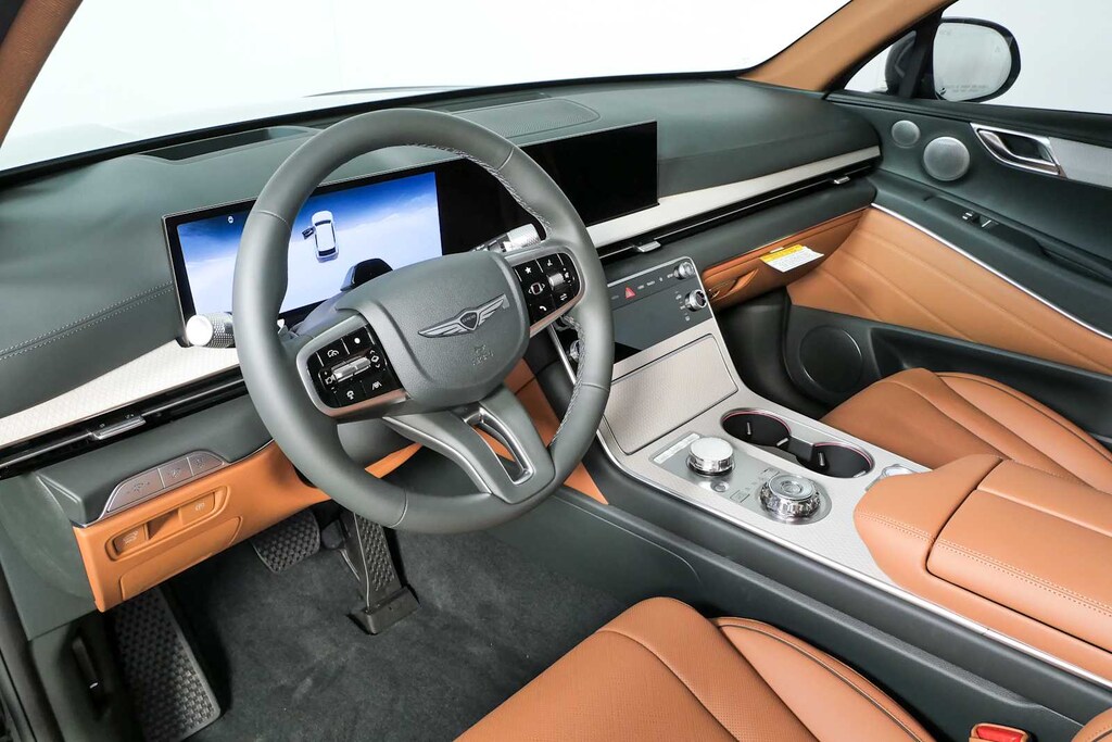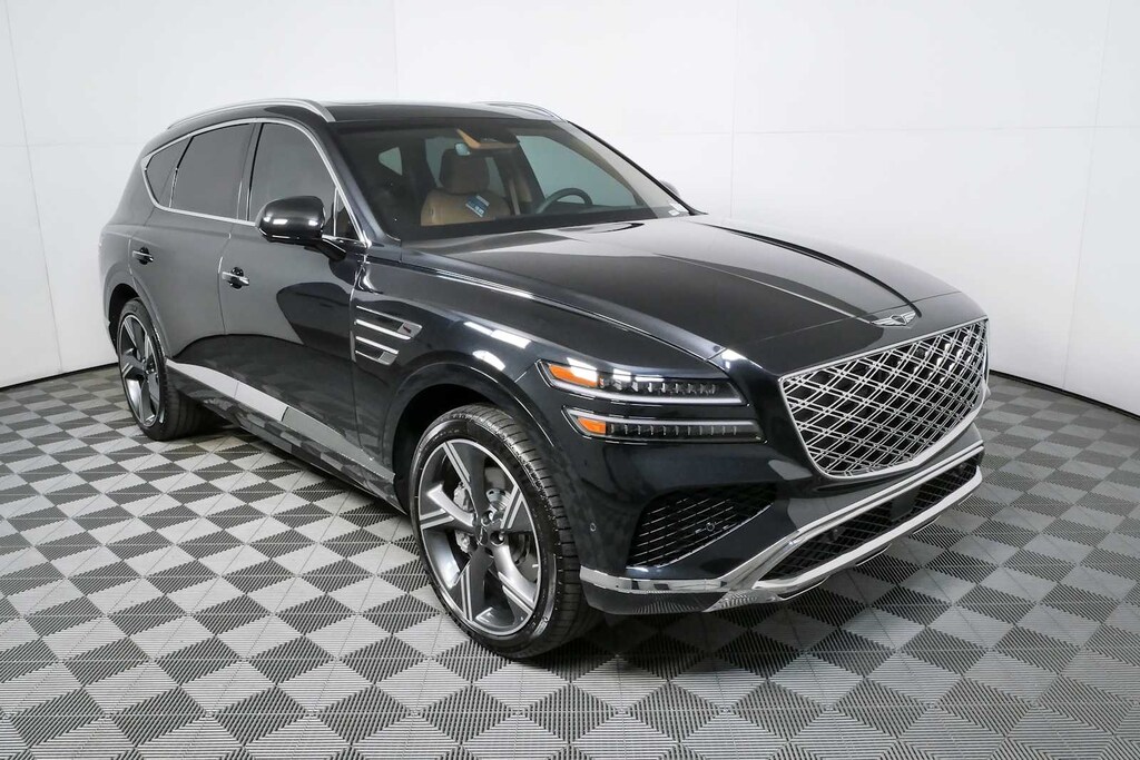 Leather Seats, Third Row Seat, Navigation, All Wheel Drive, Power Liftgate, Rear Air, Heated Driver Seat, Heated Rear Seat, Cooled Driver Seat, Back-Up Camera Rear Spoiler, MP3 Player, Privacy Glass, Keyless Entry GENESIS PRESTIGE with Vik Black exterior and Earth Brown/Smoky Green interior features a 4 Cylinder Engine. ROOF RACK CROSS BARS