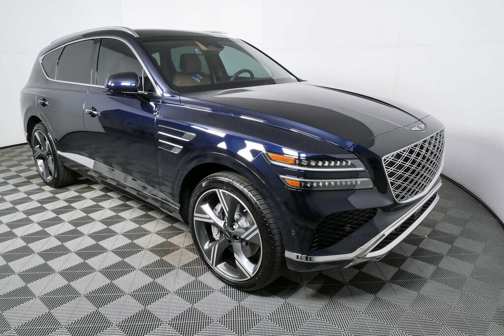 Leather Seats, Third Row Seat, Navigation, All Wheel Drive, Power Liftgate, Rear Air, Heated Driver Seat, Heated Rear Seat, Cooled Driver Seat, Back-Up Camera Rear Spoiler, MP3 Player, Privacy Glass, Keyless Entry GENESIS PRESTIGE with Capri Blue exterior and Earth Brown/Smoky Green interior features a 4 Cylinder Engine.