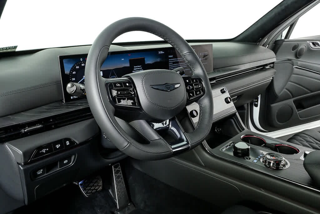 Leather Seats, Navigation, All Wheel Drive, Power Liftgate, Rear Air, Heated Driver Seat, Heated Rear Seat, Cooled Driver Seat, Cooled Rear Seat, Back-Up Camera. Rear Spoiler, MP3 Player, Remote Trunk Release, Privacy Glass. Genesis 3.5T e-SC Prestige Black with Uyuni White exterior and Obsidian Black interior features a V6 Cylinder Engine with 409 HP at 5800 RPM*.
