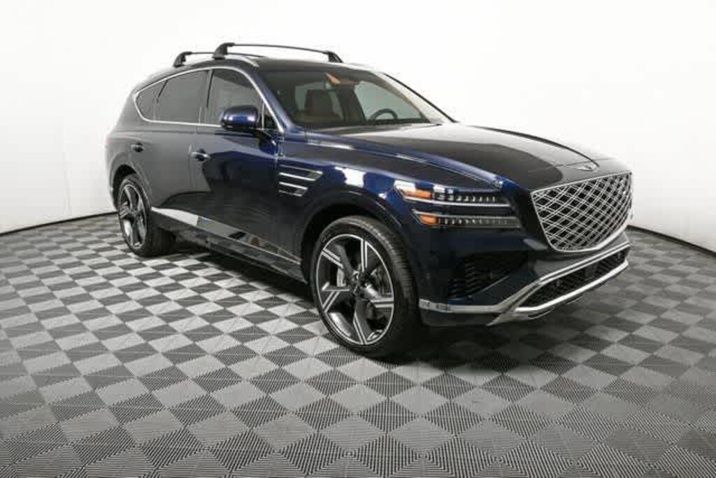 Leather Seats, Third Row Seat, Navigation, All Wheel Drive, Power Liftgate, Rear Air, Heated Driver Seat, Heated Rear Seat, Cooled Driver Seat, Cooled Rear Seat Rear Spoiler, MP3 Player, Keyless Entry, Privacy Glass. Genesis Prestige with Capri Blue exterior and Glacier White/Blue interior features a V6 Cylinder Engine with 375 HP at 5800 RPM*.