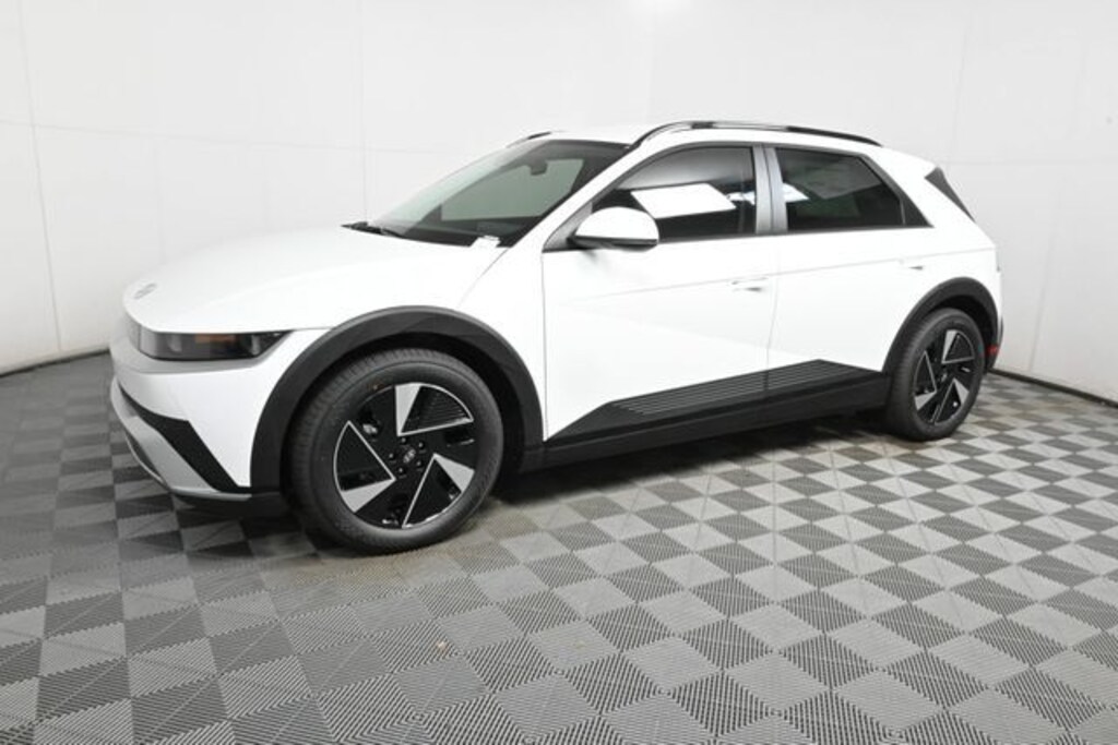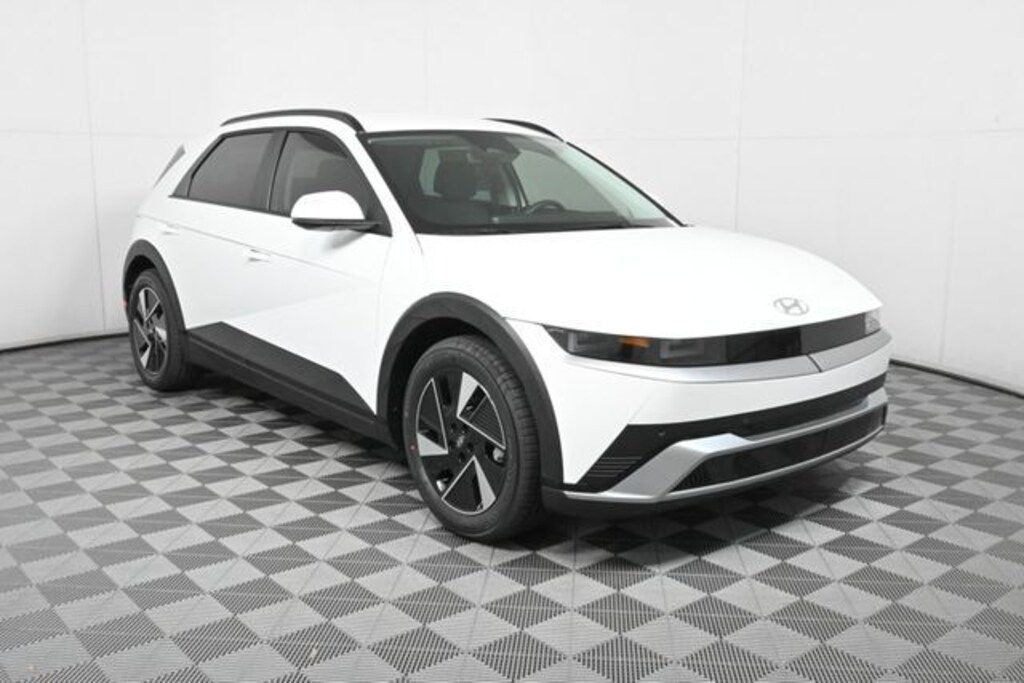 This 2025 Hyundai IONIQ 5 is equipped with Option Group 01, 4-Wheel Disc Brakes, 6 Speakers, ABS brakes, Air Conditioning, Alloy wheels, AM/FM radio: SiriusXM, Apple CarPlay & Android Auto, Auto High-beam Headlights, Auto-dimming Rear-View mirror, Automatic temperature control, Bodyside moldings, Brake assist, Bumpers: body-color, Cargo Net, Carpeted Floor Mats, Delay-off headlights, Driver door bin, Driver vanity mirror, Dual front impact airbags, Dual front side impact airbags, Electronic Stability Control, Emergency communication system: Bluelink+, First Aid Kit, Four wheel independent suspension, Front anti-roll bar, Front Bucket Seats, Front Center Armrest w/Storage, Front dual zone A/C, Front reading lights, Fully automatic headlights, Garage door transmitter: HomeLink, H-Tex Artifical Leather Seating Surfaces, harman/kardon® Speakers, Heated door mirrors, Heated Front Bucket Seats, Heated front seats, Heated rear seats, Heated steering wheel, Illuminated entry, Leather steering wheel, Low tire pressure warning, Navigation System, Occupant sensing airbag, Outside temperature display, Overhead airbag, Overhead console, Panic alarm, Passenger door bin, Passenger vanity mirror, Power door mirrors, Power driver seat, Power Liftgate, Power passenger seat, Power steering, Power windows, Radio: AM/FM/SiriusXM/HD Audio System, Rear anti-roll bar, Rear reading lights, Rear seat center armrest, Rear side impact airbag, Rear window defroster, Rear window wiper, Remote keyless entry, Security system, Speed control, Speed-sensing steering, Split folding rear seat, Spoiler, Steering wheel mounted audio controls, Telescoping steering wheel, Tilt steering wheel, Traction control, Trip computer, Turn signal indicator mirrors, Variably intermittent wipers, and Wheels: 19" x 7.5J Alloy. Not all rebates are compatible with all finance programs. Please see dealer for details and final price. $7500 - Retail Bonus Cash. Exp. 09/30/2025