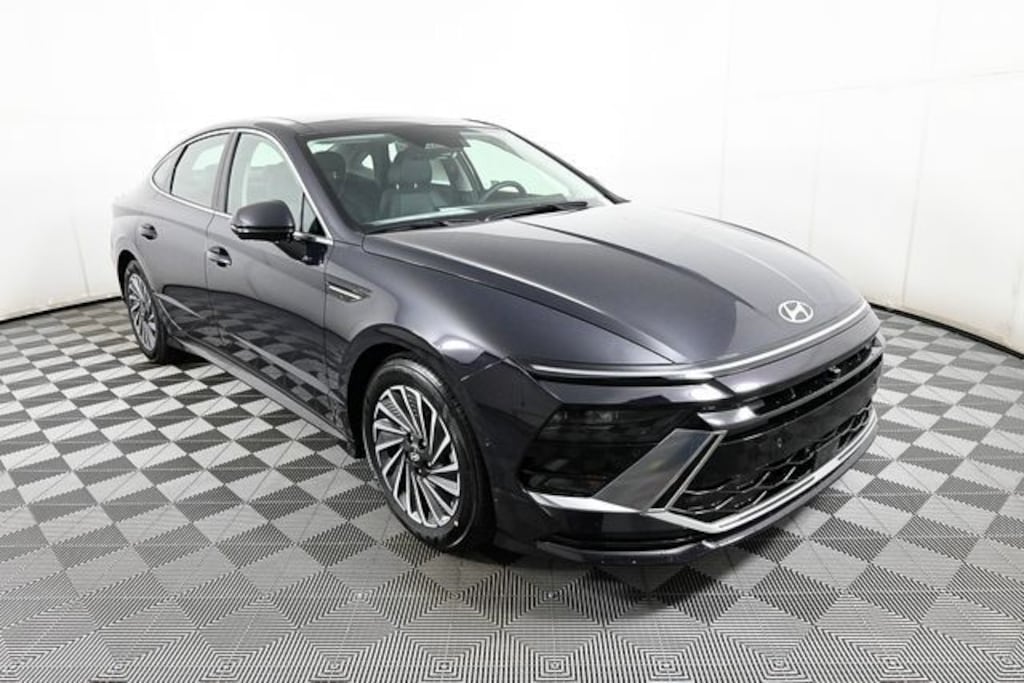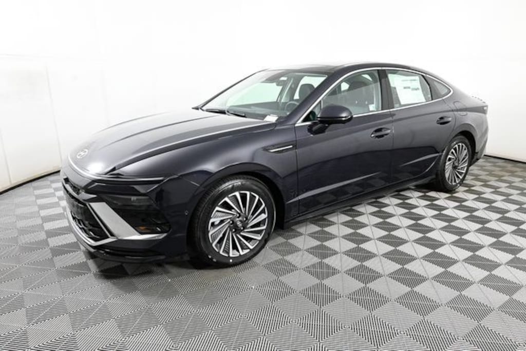 I4. This 2025 Hyundai Sonata Hybrid is equipped with Option Group 01, I4, 12 Speakers, 17" x 7.0J Aluminum Alloy Wheels, 4-Wheel Disc Brakes, ABS brakes, Air Conditioning, All-Season Fitted Liners, Alloy wheels, AM/FM radio: SiriusXM, Apple CarPlay & Android Auto, Auto High-beam Headlights, Auto-dimming Rear-View mirror, Automatic temperature control, Brake assist, Bumpers: body-color, Cargo Net, Carpeted Floor Mats, Delay-off headlights, Driver door bin, Driver vanity mirror, Dual front impact airbags, Dual front side impact airbags, Electronic Stability Control, Emergency communication system: Bluelink+, First Aid Kit, Four wheel independent suspension, Front anti-roll bar, Front Bucket Seats, Front Center Armrest, Front dual zone A/C, Front reading lights, Fully automatic headlights, Heads-Up Display, Heated door mirrors, Heated front seats, Heated steering wheel, Illuminated entry, Knee airbag, Lane Departure Warning System, Leather Seating Surfaces, Leather steering wheel, Low tire pressure warning, Memory seat, Navigation System, Occupant sensing airbag, Outside temperature display, Overhead airbag, Overhead console, Panic alarm, Passenger door bin, Passenger vanity mirror, Power door mirrors, Power driver seat, Power moonroof, Power passenger seat, Power steering, Power windows, Radio data system, Radio: AM/FM/HD/SiriusXM, Rain sensing wipers, Rear anti-roll bar, Rear seat center armrest, Rear side impact airbag, Rear window defroster, Remote keyless entry, Security system, Speed control, Speed-sensing steering, Speed-Sensitive Wipers, Split folding rear seat, Spoiler, Steering wheel mounted audio controls, Tachometer, Telescoping steering wheel, Tilt steering wheel, Traction control, Trip computer, Variably intermittent wipers, Ventilated Front AND Rear Seats, Ventilated front seats, and Wheel Locks. Not all rebates are compatible with all finance programs. Please see dealer for details and final price. $2000 - Hyundai HMF Dealer Choice : $2000 discount and 5.99% APR for 24 months. $44.32 per $1000 financed. Available to well qualified buyers who finance through Hyundai Motor Finance. H704. Exp. 11/03/2025