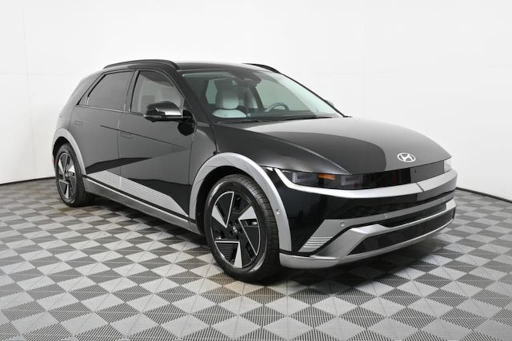 This 2026 Hyundai IONIQ 5 is equipped with 4-Wheel Disc Brakes, 8 Speakers, ABS brakes, Air Conditioning, Alloy wheels, AM/FM radio: SiriusXM, Apple CarPlay & Android Auto, Auto High-beam Headlights, Auto-dimming Rear-View mirror, Automatic temperature control, Bodyside moldings, Brake assist, Bumpers: body-color, Delay-off headlights, Driver door bin, Driver vanity mirror, Dual front impact airbags, Dual front side impact airbags, Electronic Stability Control, Emergency communication system: Bluelink+, Four wheel independent suspension, Front anti-roll bar, Front Bucket Seats, Front Center Armrest w/Storage, Front dual zone A/C, Front reading lights, Fully automatic headlights, Garage door transmitter: HomeLink, H-Tex Artifical Leather Seating Surfaces, Heads-Up Display, Heated door mirrors, Heated front seats, Heated rear seats, Heated steering wheel, Illuminated entry, Low tire pressure warning, Memory seat, Navigation System, Occupant sensing airbag, Outside temperature display, Overhead airbag, Overhead console, Panic alarm, Passenger door bin, Passenger vanity mirror, Power door mirrors, Power driver seat, Power Liftgate, Power passenger seat, Power steering, Power windows, Radio: AM/FM/SiriusXM/HD Audio System, Rain sensing wipers, Rear anti-roll bar, Rear reading lights, Rear seat center armrest, Rear side impact airbag, Rear window defroster, Rear window wiper, Remote keyless entry, Security system, Speed control, Speed-sensing steering, Split folding rear seat, Spoiler, Steering wheel mounted audio controls, Telescoping steering wheel, Tilt steering wheel, Traction control, Trip computer, Turn signal indicator mirrors, Variably intermittent wipers, Ventilated Front AND Rear Seats, Ventilated front seats, and Wheels: 19" x 7.5J Alloy. Not all rebates are compatible with all finance programs. Please see dealer for details and final price. $1500 - Hyundai HMF Dealer Choice : $1500 discount and 5.49% APR for 24 months. $44.09 per $1000 financed. Available to well qualified buyers who finance through Hyundai Motor Finance. H704. Exp. 12/01/2025